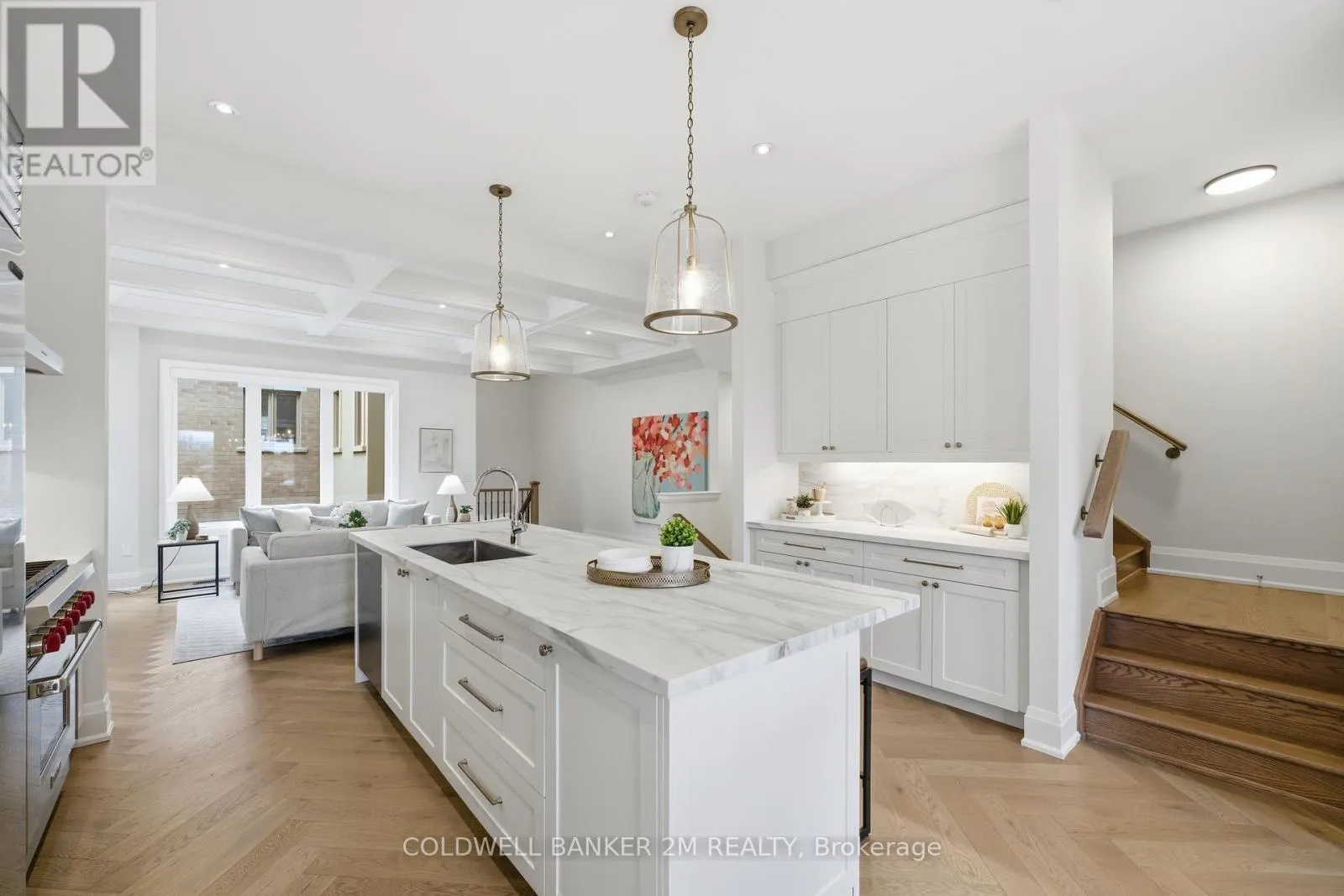 A rare offering that blends sophisticated design with unmatched versatility-this sun-filled end-unit townhome lives like a semi-detached residence and offers the rare convenience of a two-car garage. Inside, you’ll find approximately 3,470 sq. ft. of refined living space, complemented by a beautifully finished, fully detached one-bedroom, 584 sq. ft. coach house.Inside, elevated design meets everyday comfort. The main level showcases