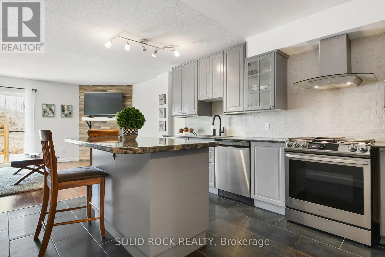 This beautifully updated 3-bedroom, 2-bathroom home has been renovated from top to bottom-offering stylish, modern living with nothing left to do but move in. Enjoy no rear neighbours and peaceful forest views. The bright main floor features a stunning renovated kitchen with a granite island, gas stove, and smart storage drawers, flowing into the inviting living room with a cozy