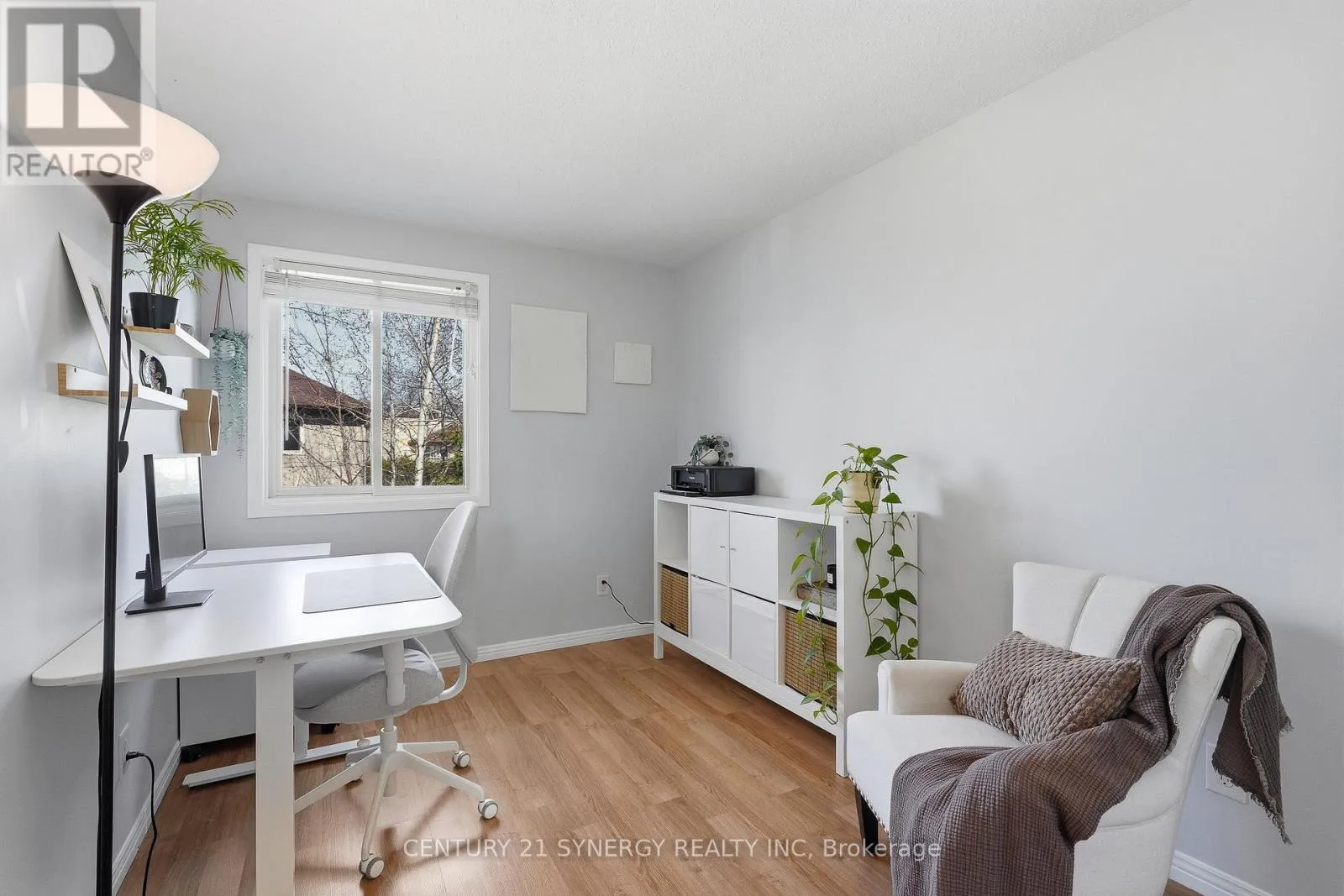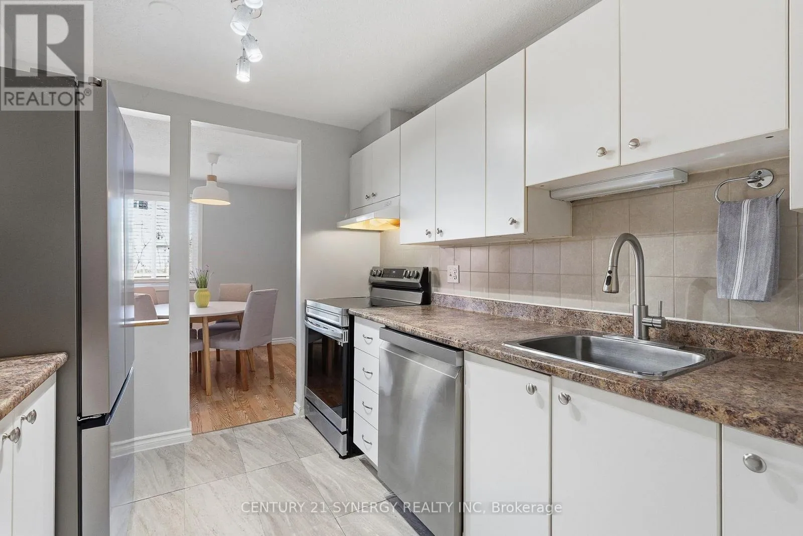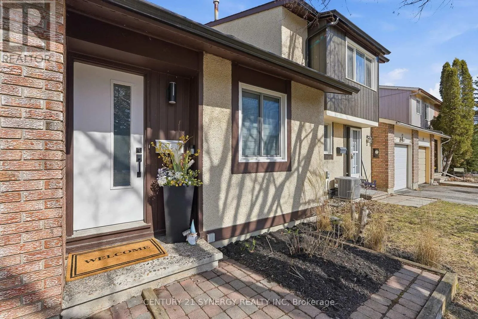 Freehold END UNIT with a large private and fenced yard. Unique floor plan w/2 bedrooms on the 2nd level and 1 on the main level easily used as a home office. Spacious L-shaped living / dining room overlooking the back yard patio. Gally style kitchen offers ample cupboard and counter space. 2-pc bathroom and garage access. Upstairs there are 2-family