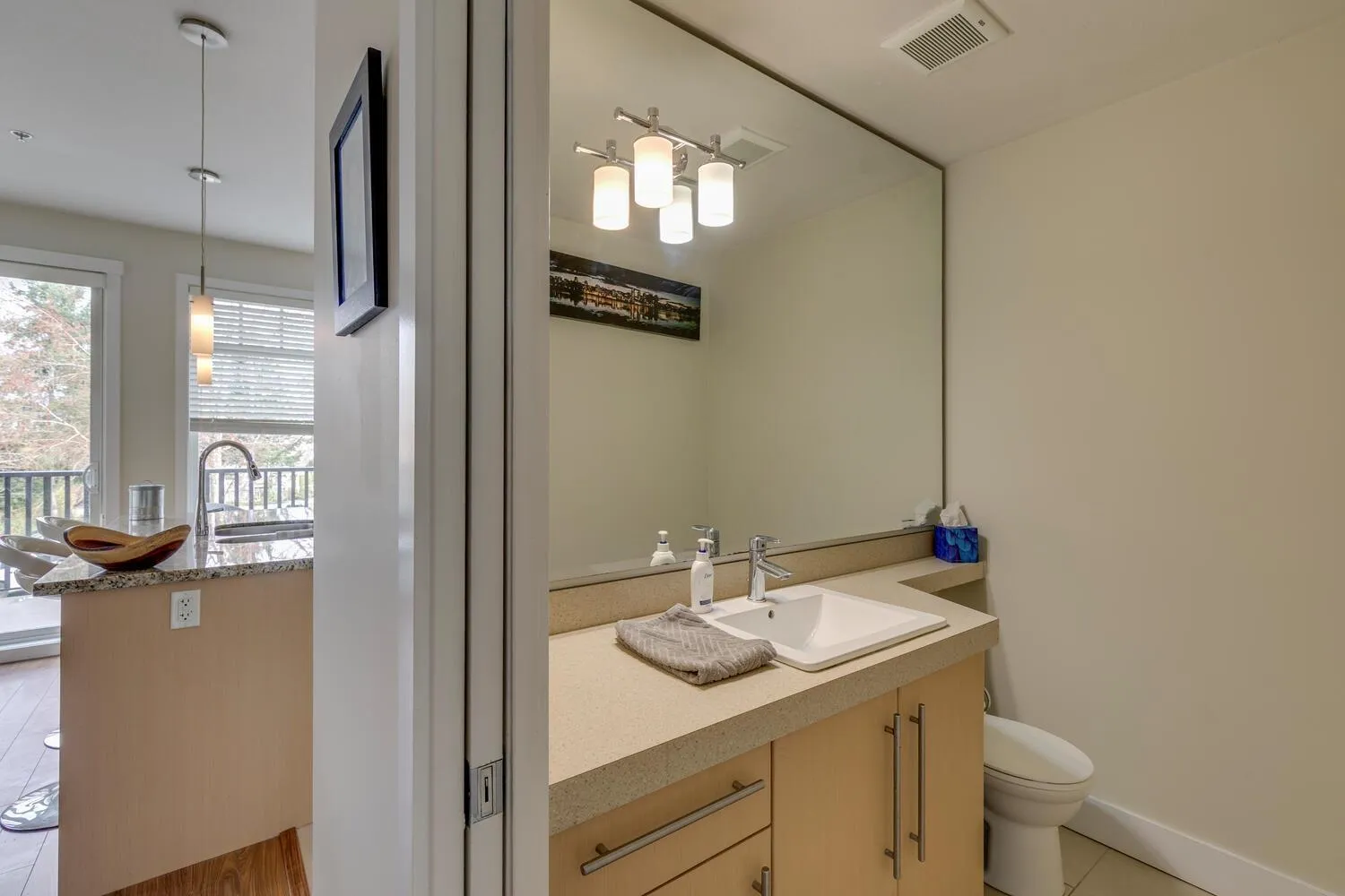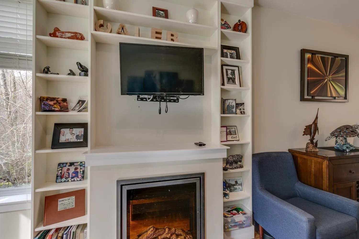 Welcome to the OUTLOOK Complex. This open floor plan south facing END unit is one of the few in the complex that has a 2 car garage, and room for 3 to park. S/S appliances, under mount sink in the island, granite counters separate eating area with easy access to deck. Custom built-in shelving around the fireplace, high ceilings and