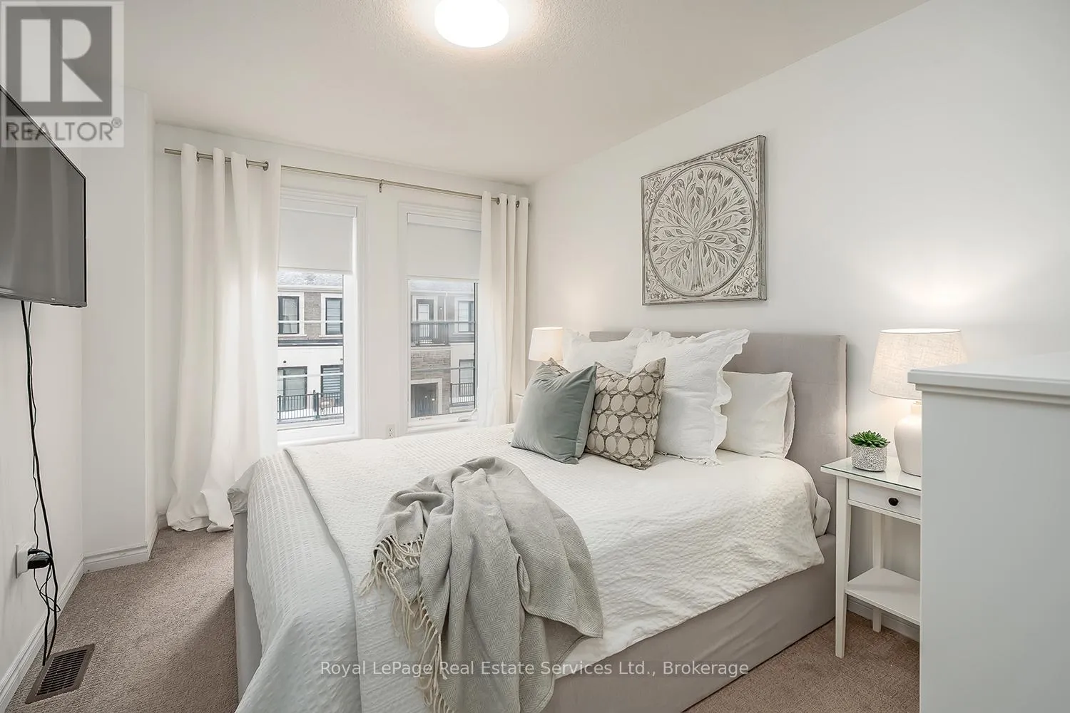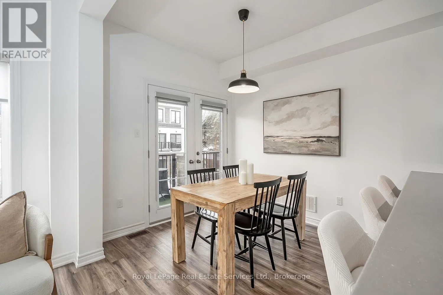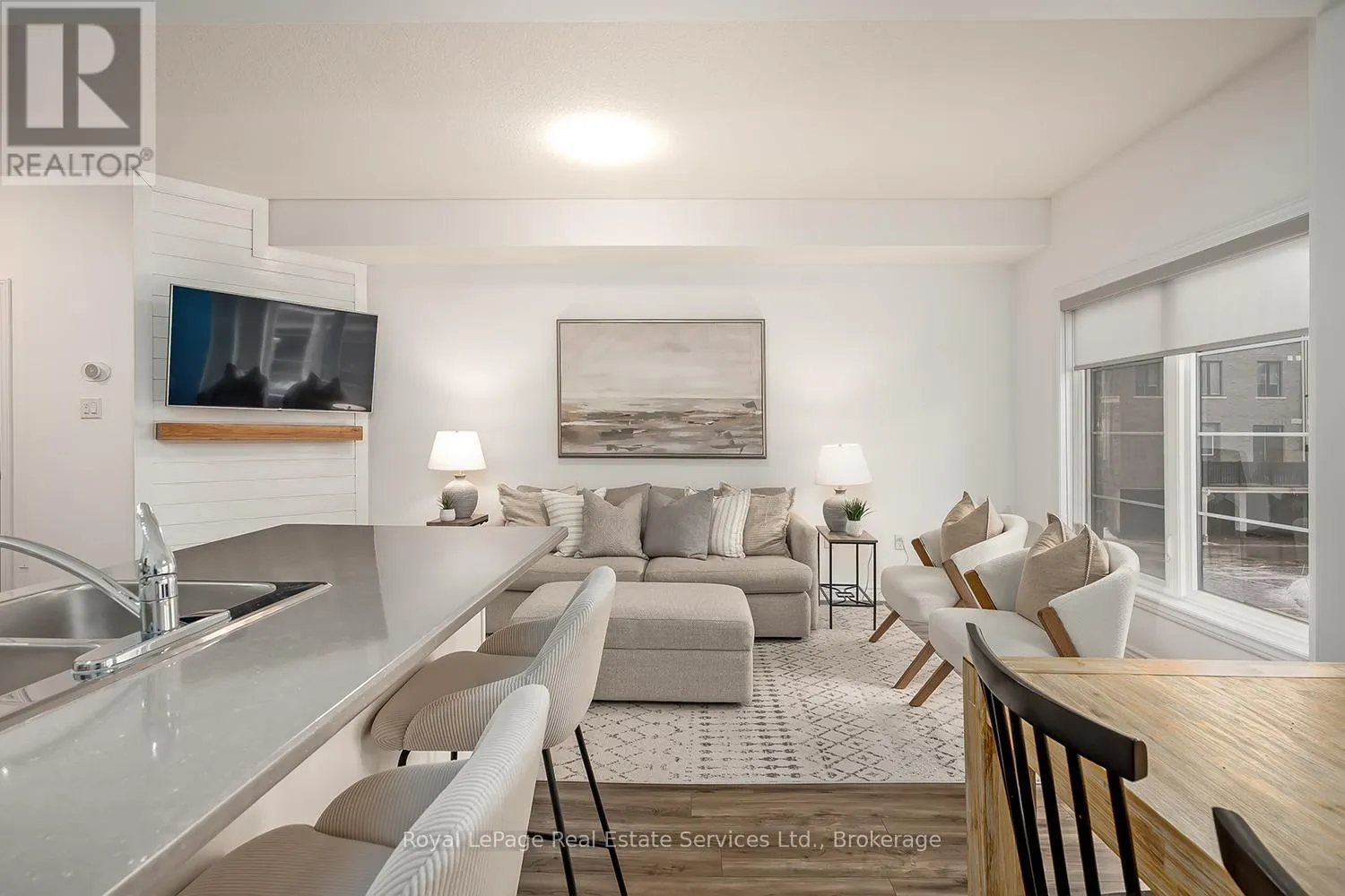 Stylish + Contemporary 3 Storey Townhome in the heart of charming Waterdown! Impeccably Maintained 2 Bedroom, 2.5 Bathroom Boasts over1300 sq ft. This home is a perfect combination of style, functionality + convenience. Large foyer with double door closet, utility room + insideaccess from garage. The main living space features a spacious living area, separate dining area w direct access