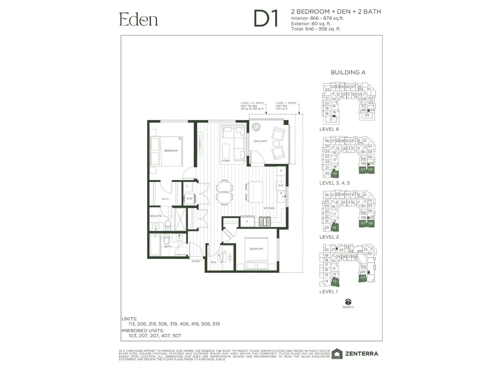 Introducing Eden by award-winning Zenterra Developments at 76th Ave and 200th St, Willoughby. Located across from Langley Events Centre, RE Mountain Secondary School, walking distance to shops and 3 mins to Hwy 1. This BRAND-NEW condo offers 2 bedrooms + den and 2 bathrooms with 9′ ceilings, A/C, built-in closet organizers, washer/dryer, storage locker & 1 parking stall w/ EV