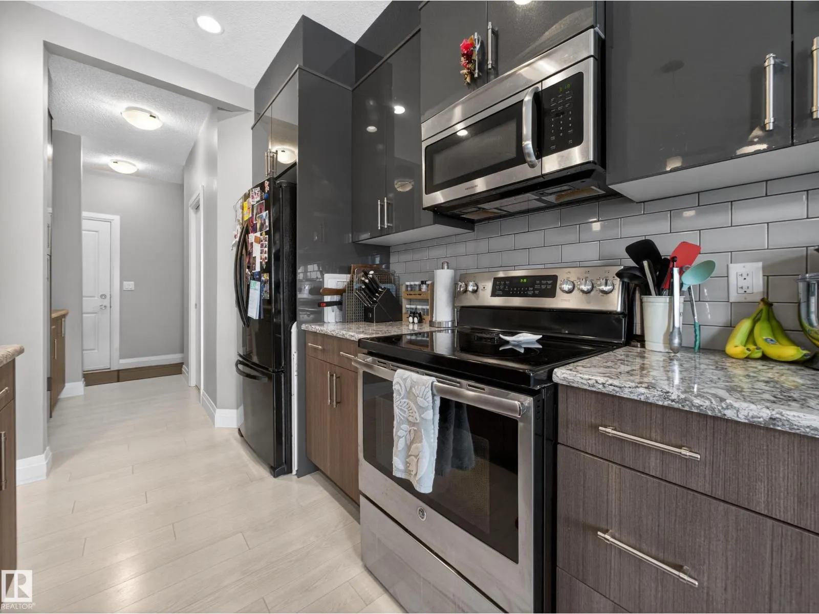 ~!WELCOME HOME!~ SUPERB LOCATION… IMPECCABLE DESIGN + FINISH! DOUBLE PRIMARY BEDROOMS… BUTLER’S PANTRY/COFFEE STATION!!!…This is NOT your average DUPLEX—virtually every detail has been thoughtfully considered… then upgraded! Step inside to a custom built-in coat rack with bench + shelving, then flow through the butler pantry into a standout kitchen featuring 9’ ceilings, full-height 42” high-gloss cabinets, granite countertops, and sleek