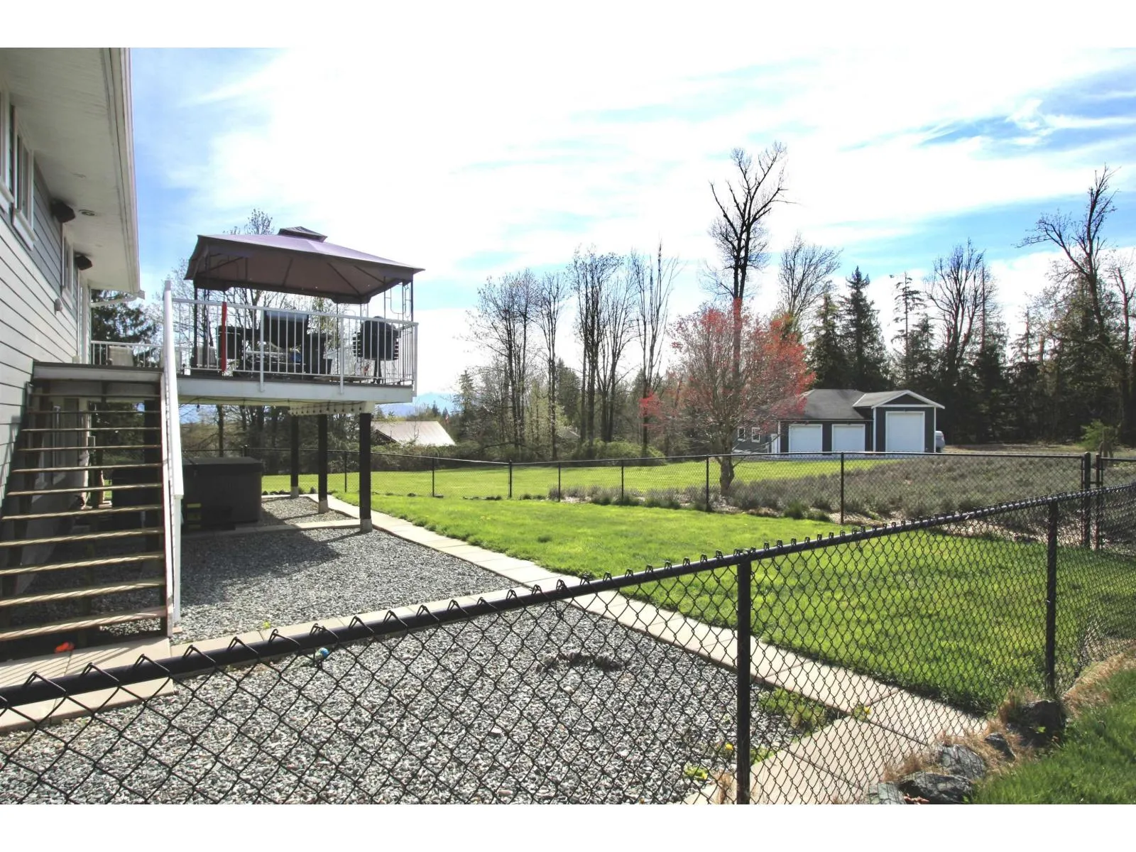 Beautifully UPDATED 4bdrm/3 bathrm home on PRIVATE 5 Acres with 7yr old 50’x47 SHOP in QUIET Bradner / Mt Lehman location. MAIN FLOOR features Open Concept 19′ Greatroom (vaulted ceilings / stacked stone f/p) AMAZING updated GRANITE kitchen (entertainers bar stool island, gas stove, S/S appliances) opens to dining area & BBQ deck. LOWER LEVEL (easily suited) features 1 bedrm(could
