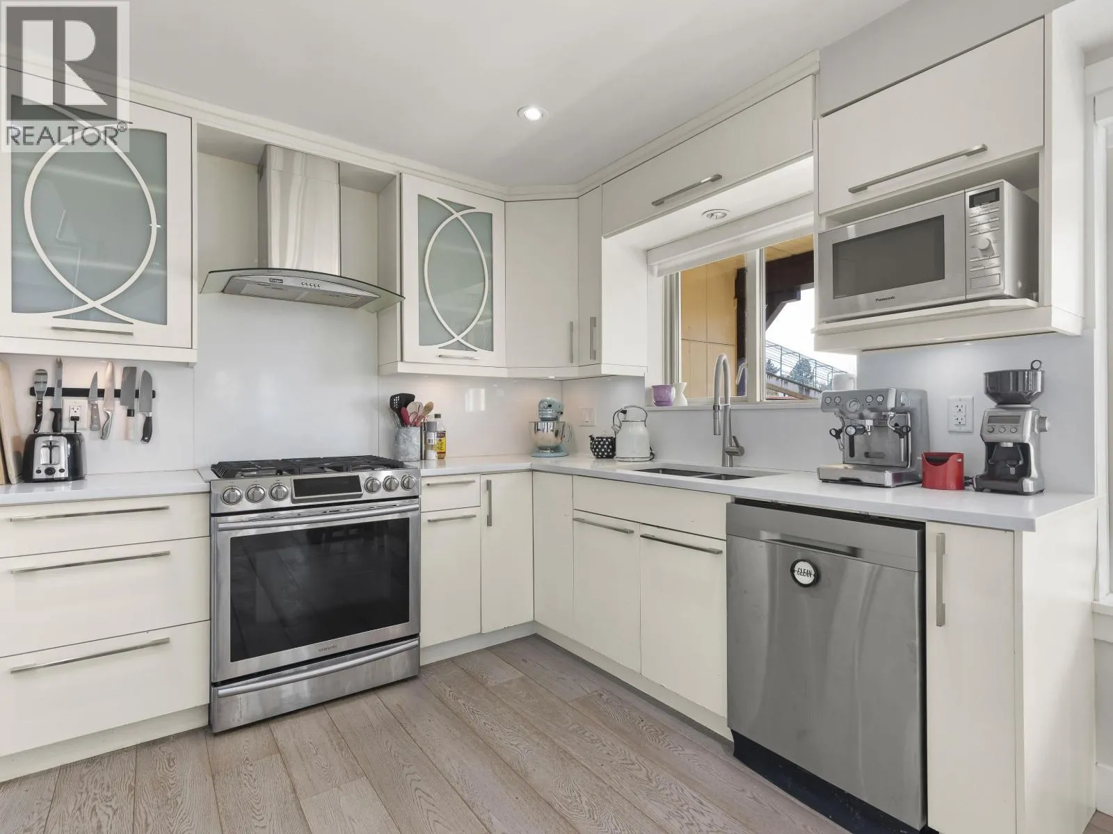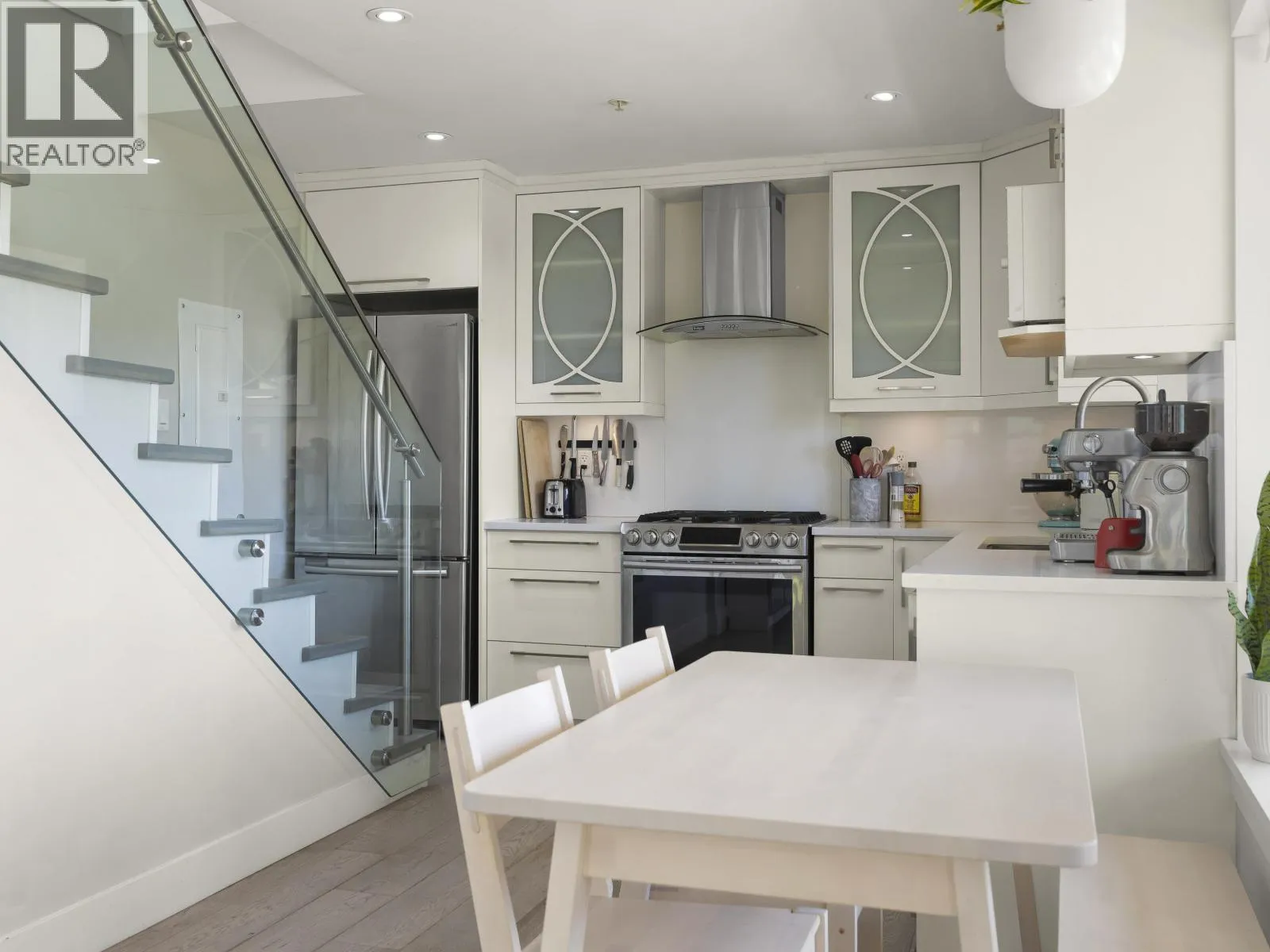 Keefer Station in Strathcona. Situated in a cul-de-sac, this bright 3-bed, 1/2-bath duplex offers a smart layout on 3 levels. Open main floor with HW floors, S/S appliances & a sinkside kitchen window. Flexible plan in the living room with deck access. Upper floor has 2 bdrms with skylights & a full bath. The primary suite below provides privacy and