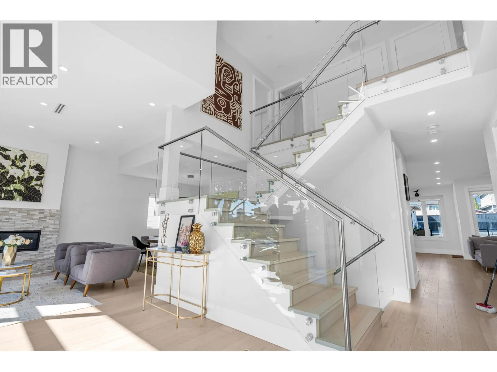 Extraordinary custom-built home offering over 4,500 sq.ft. of luxurious living space! Features 6 bedrooms, 6 bathrooms, potential for 8 bedrooms, and 3 kitchens including a 2-bedroom legal suite and soundproof media room. Exceptional craftsmanship with grand foyer, glass staircase, Miele appliances, and modern cabinets by Attractive Kitchen Cabinet Ltd. Family room opens to an entertainment-sized deck with outdoor fireplace. Includes