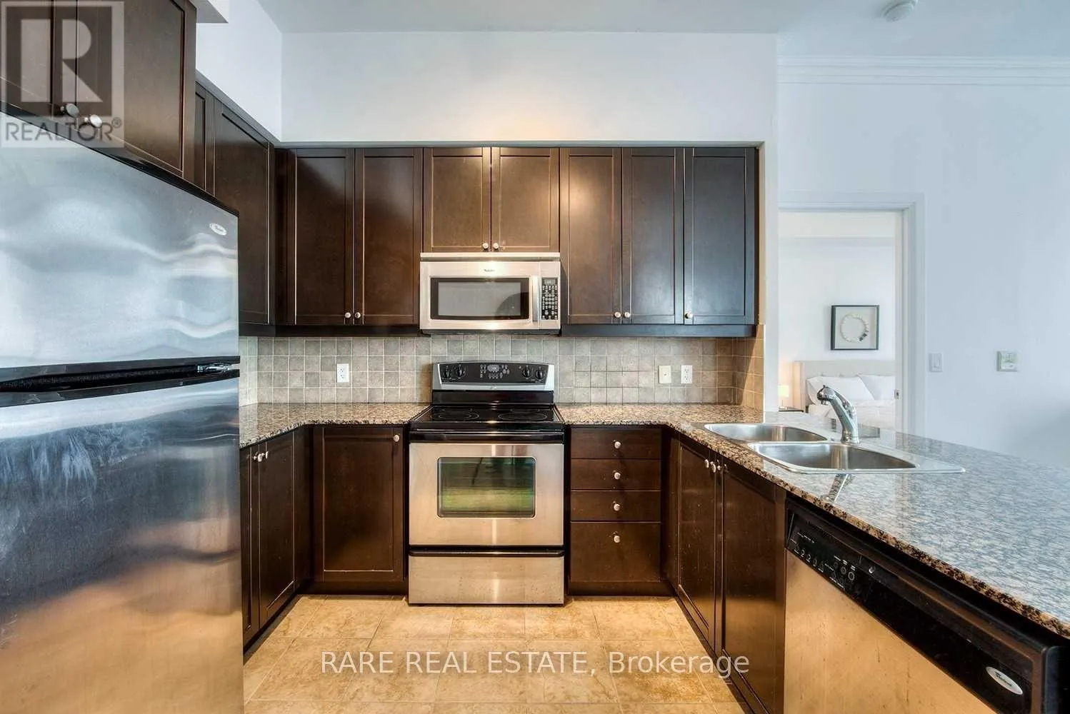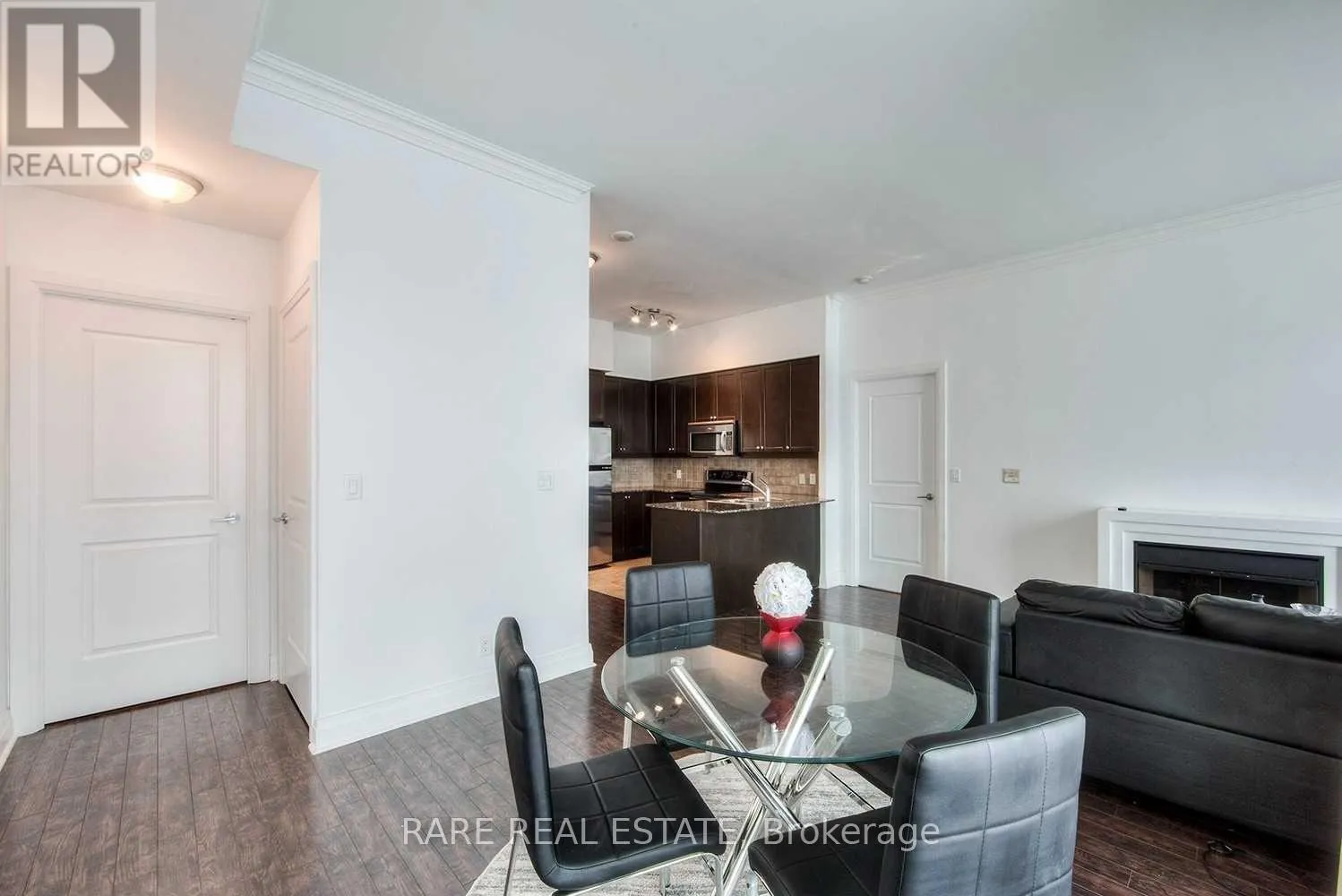 1 parking spot and 2 lockers included. Heat, hydro, water included. Bright lower penthouse with 10 ft ceilings and floor-to-ceiling windows bringing in tons of natural light. Spacious 2+1 bedroom, 2 bathroom layout with hardwood floors and a gas fireplace. Kitchen features stainless steel appliances, granite countertops, backsplash, and breakfast bar. Primary bedroom includes a walk-in closet and a large