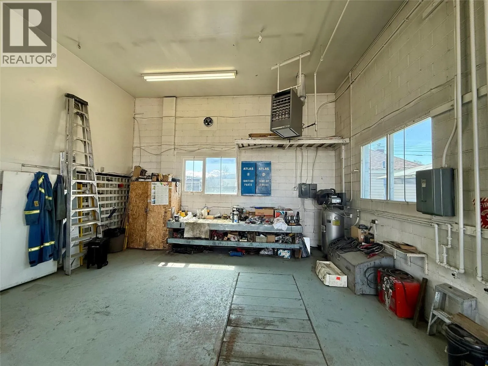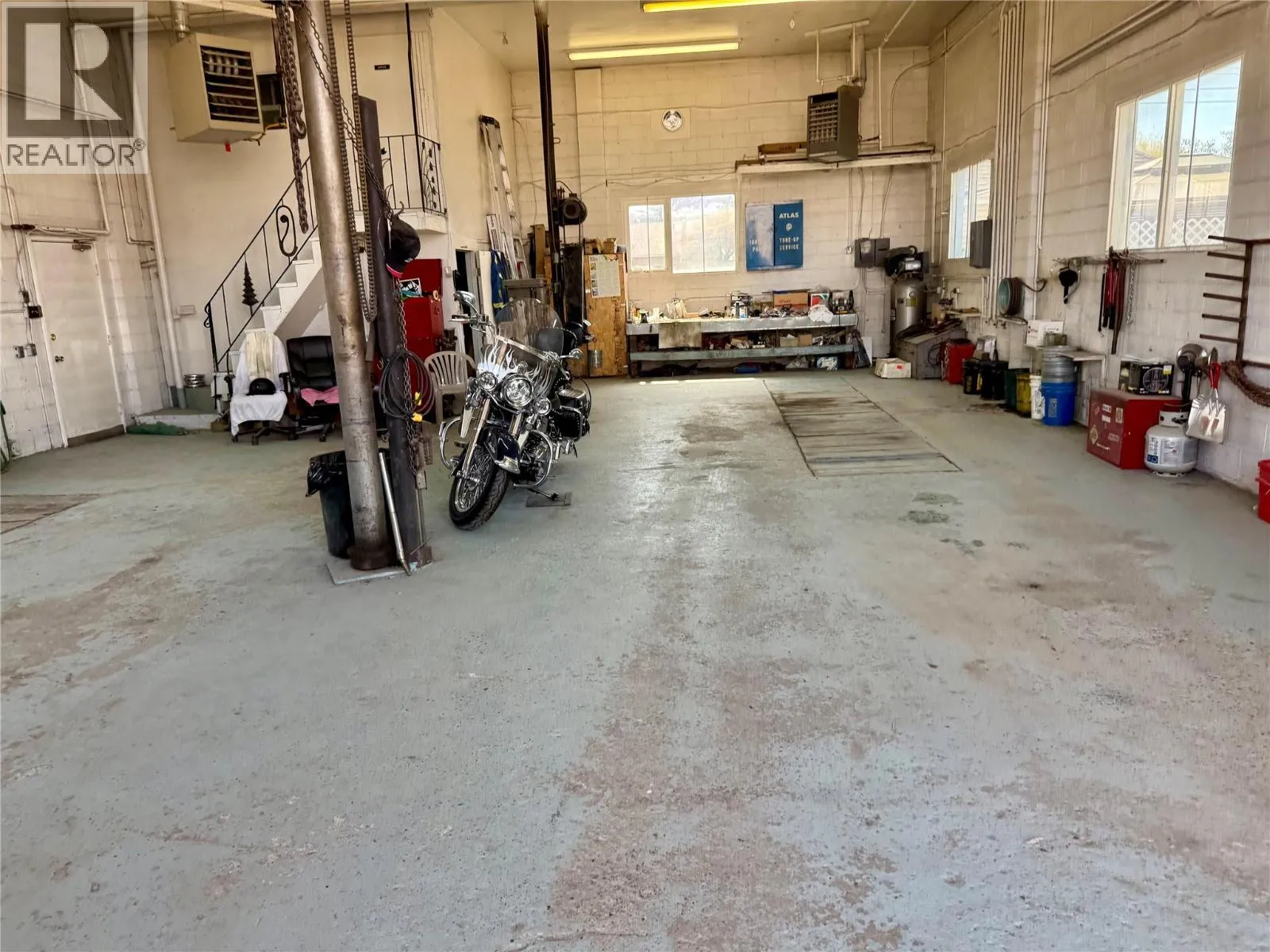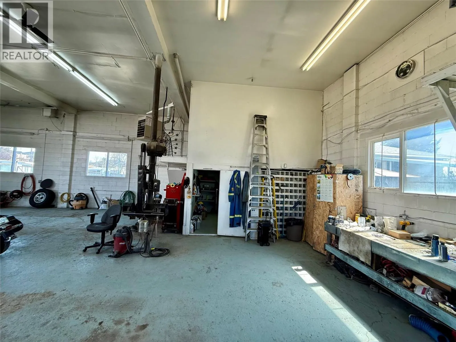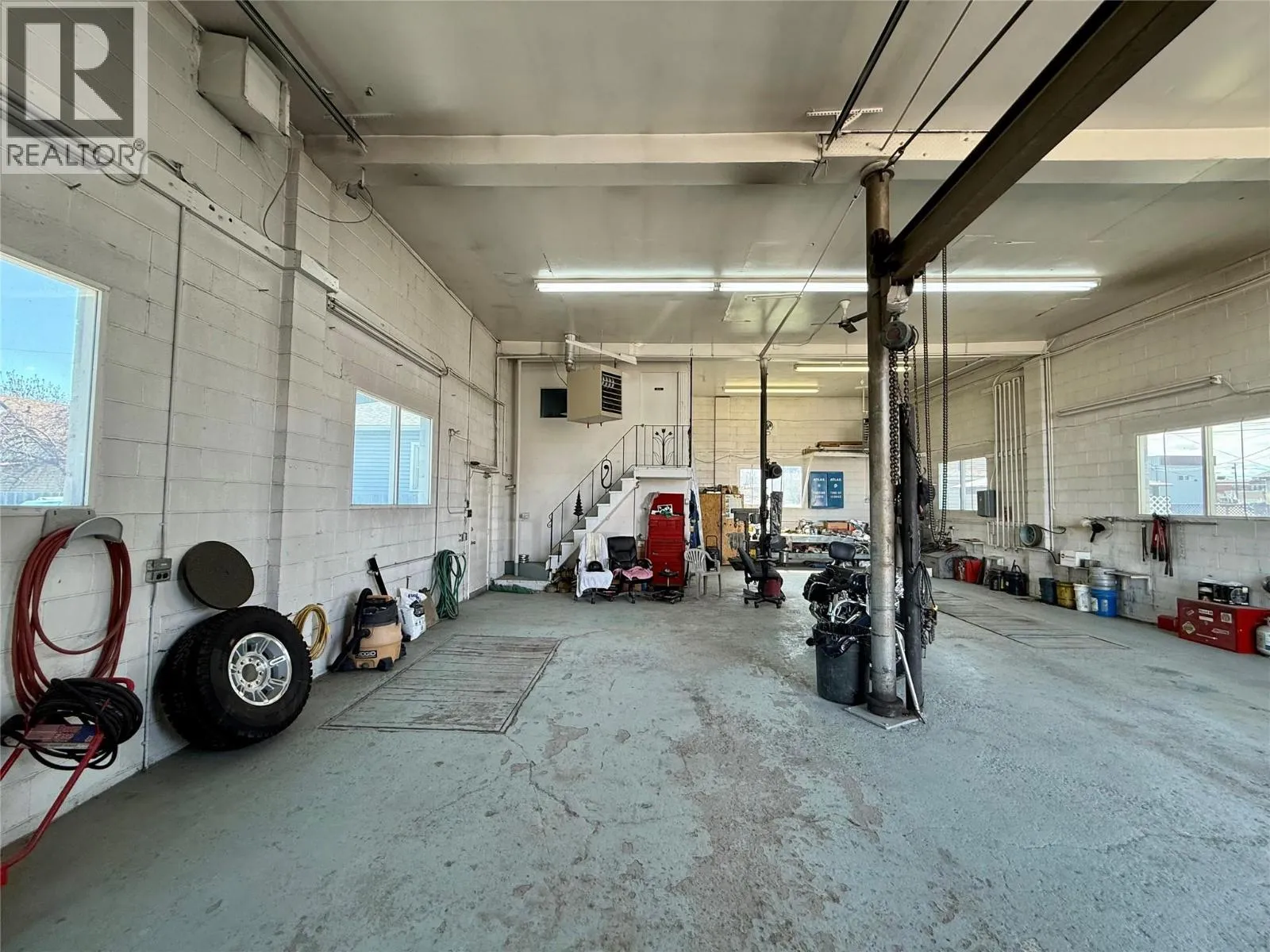 This versatile commercial building, offers 1,700 square feet on the main floor with high ceilings and two 14-foot bay doors, providing excellent access for vehicles and equipment. Upstairs, a second-floor office provides additional space for administration or storage. The building includes a convenient 2-piece bathroom and a secure, fenced compound—perfect for outdoor storage or parking. With flexible C2 zoning and