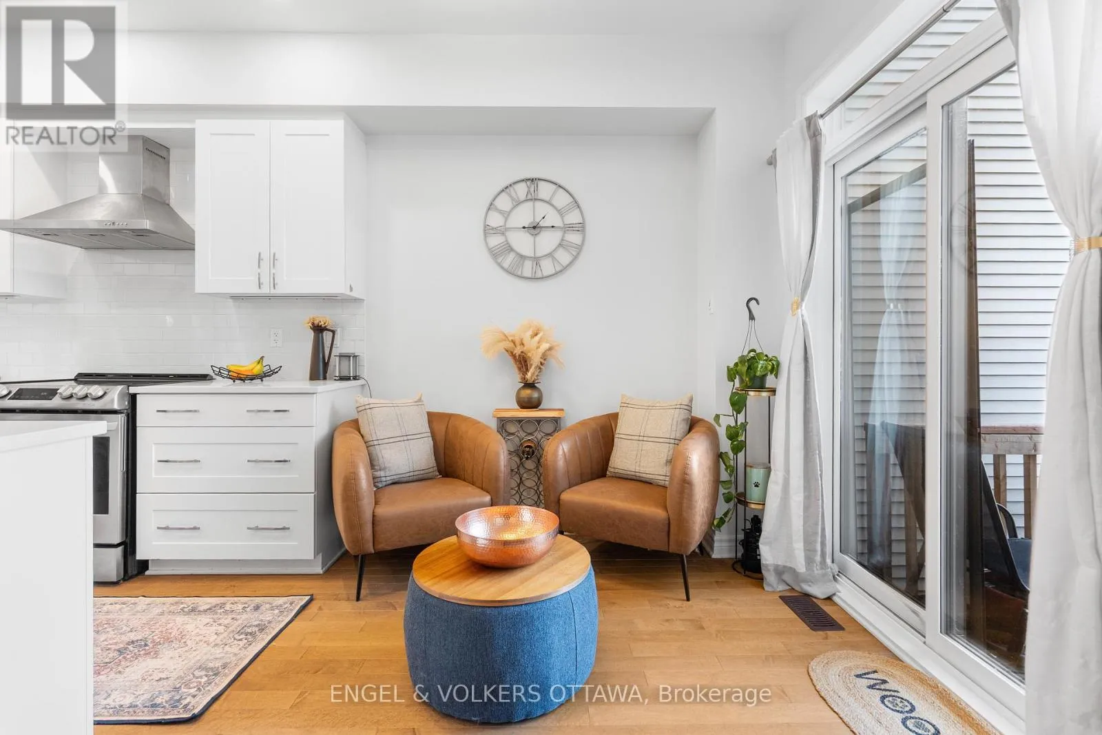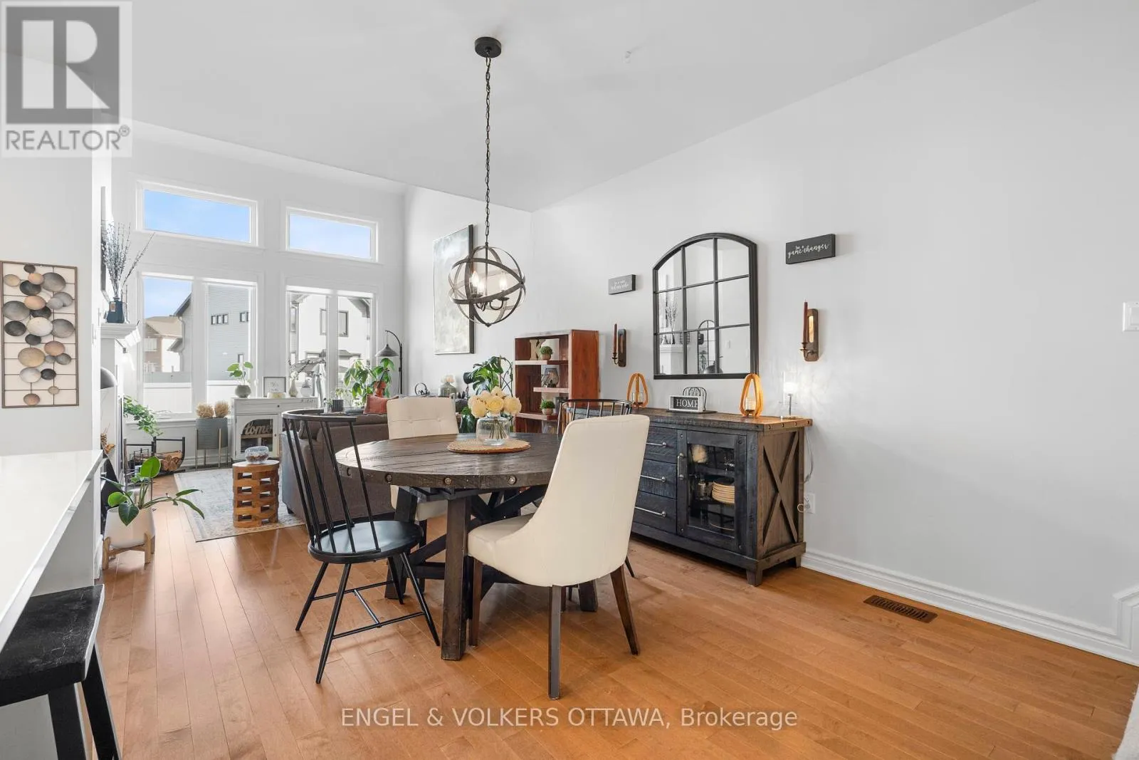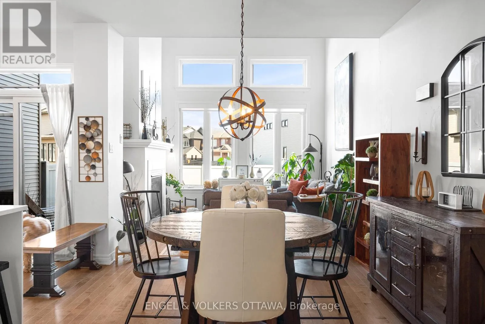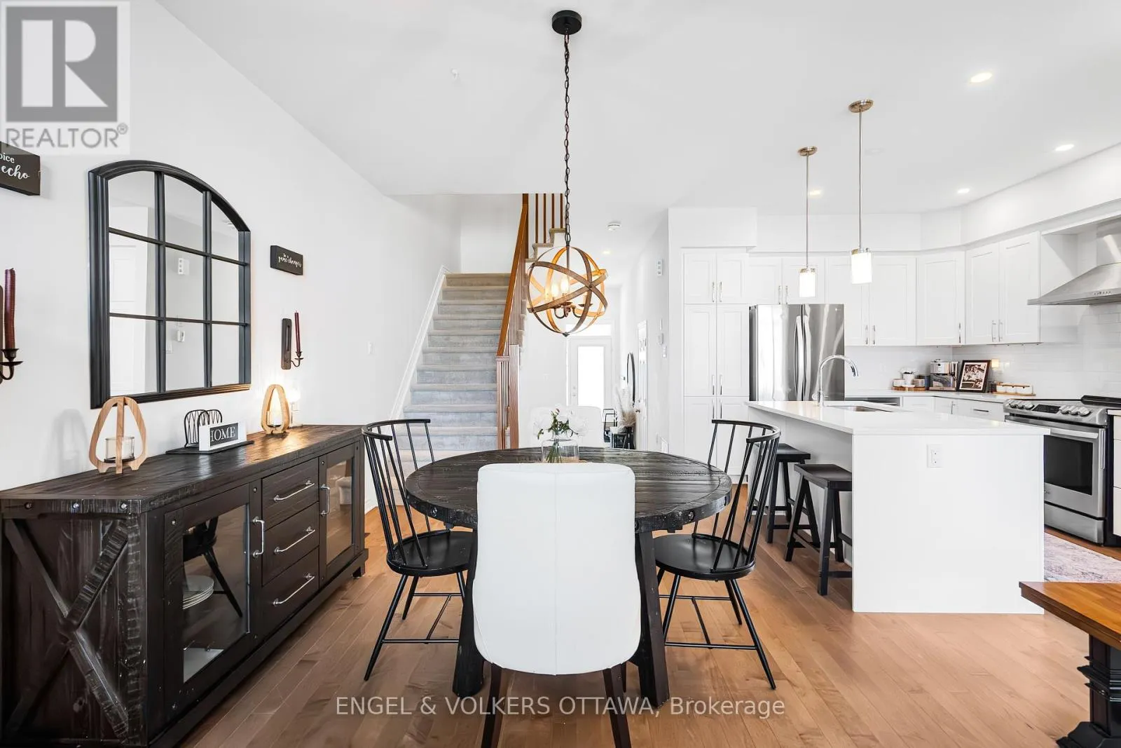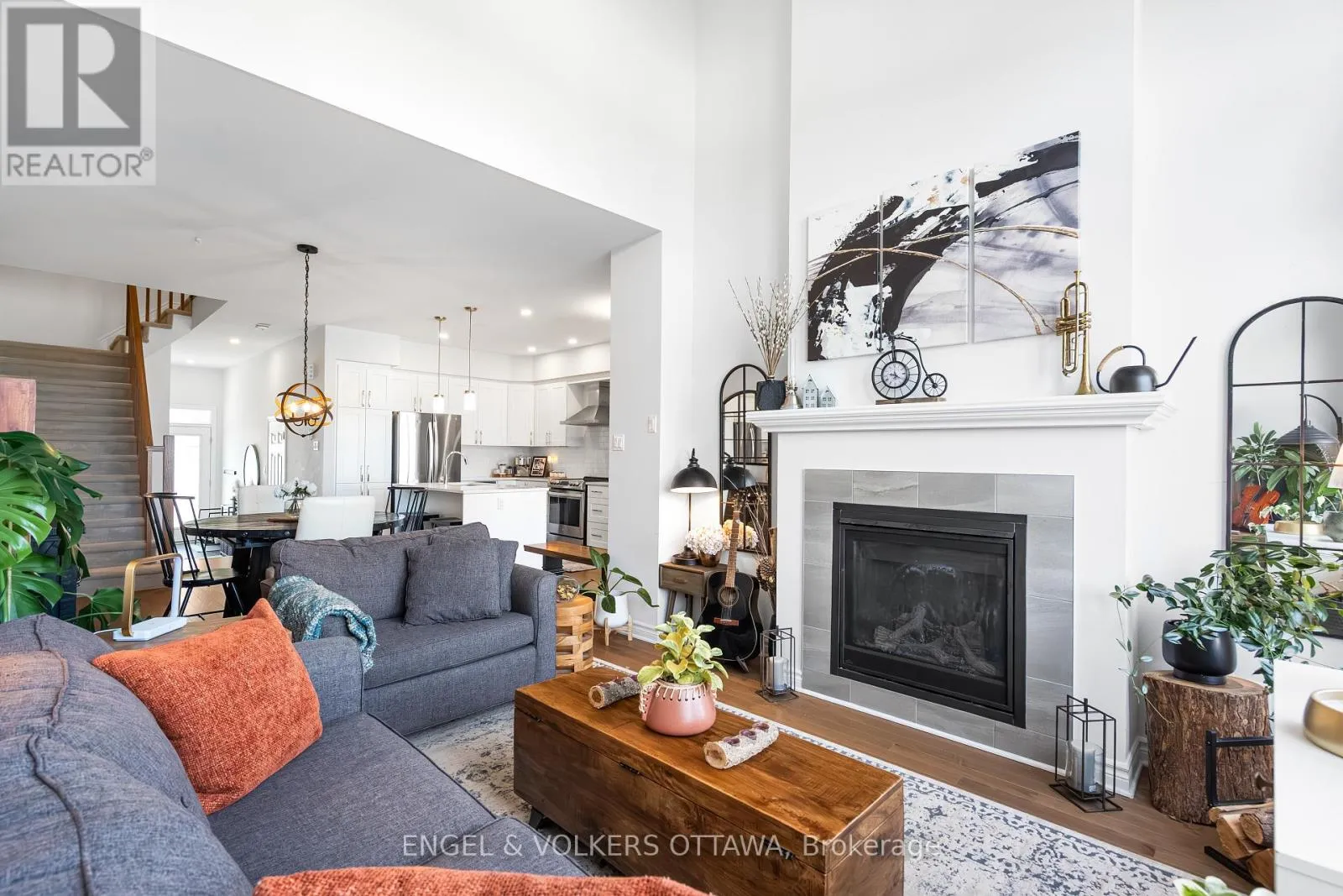 This spacious and bright Richcraft Addison model townhome in Findlay Creek features an open concept layout with modern finishes throughout, including hardwood flooring and quartz countertops in the kitchen. The main level offers a sun-filled living room with cathedral ceilings and a cozy gas fireplace. The second level includes a generous primary bedroom with a walk-in closet and a 4-piece