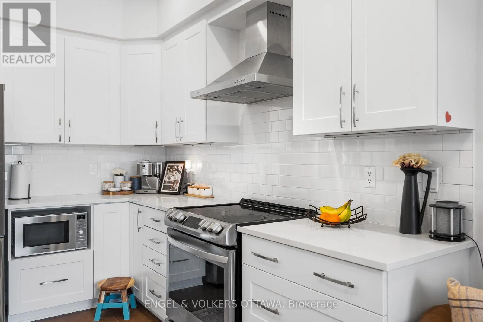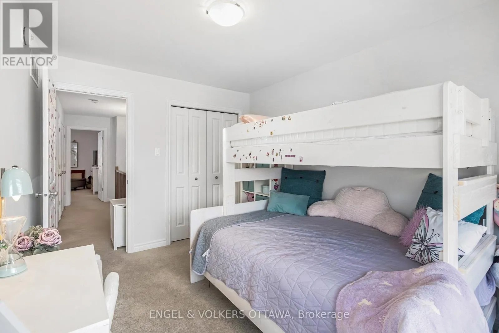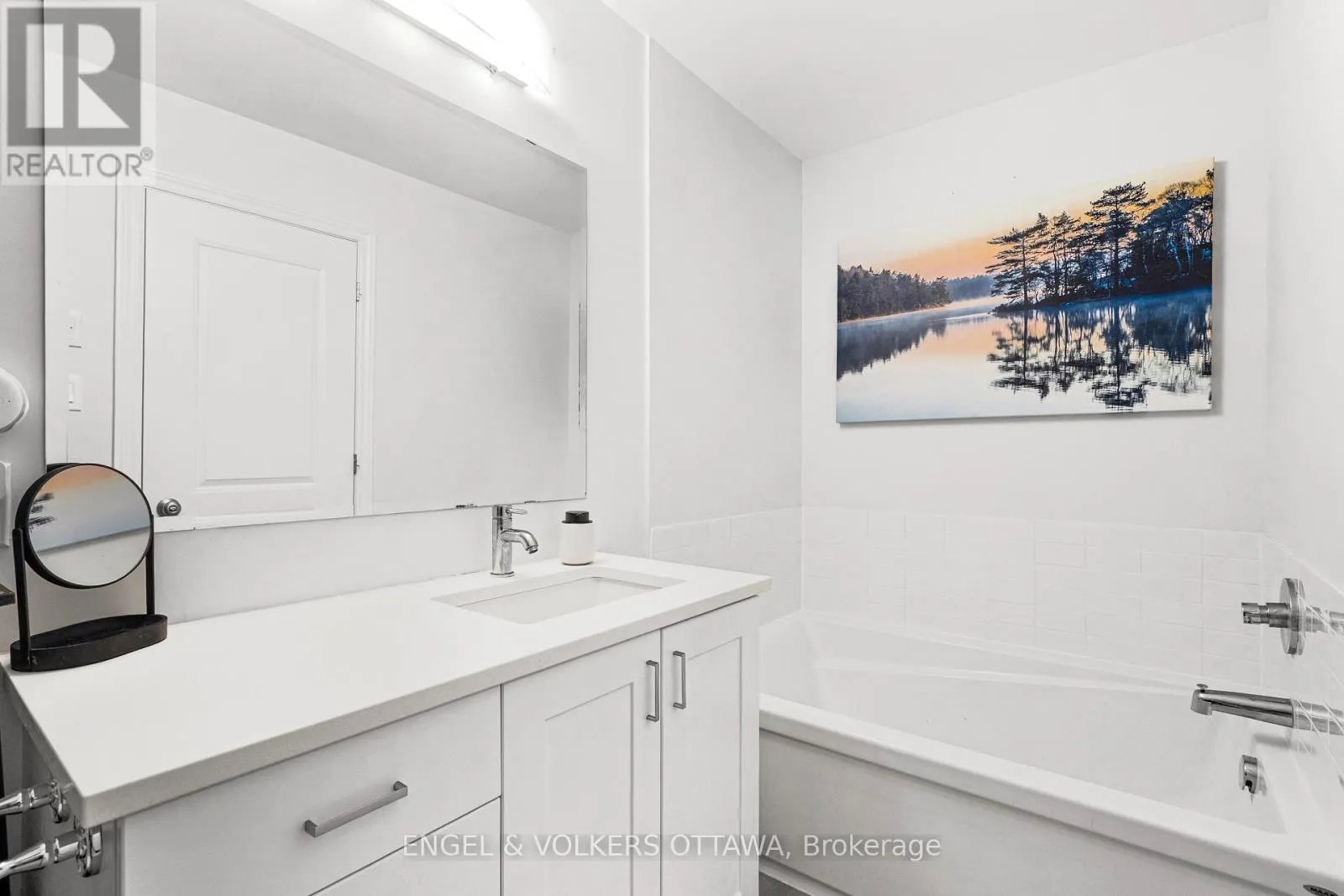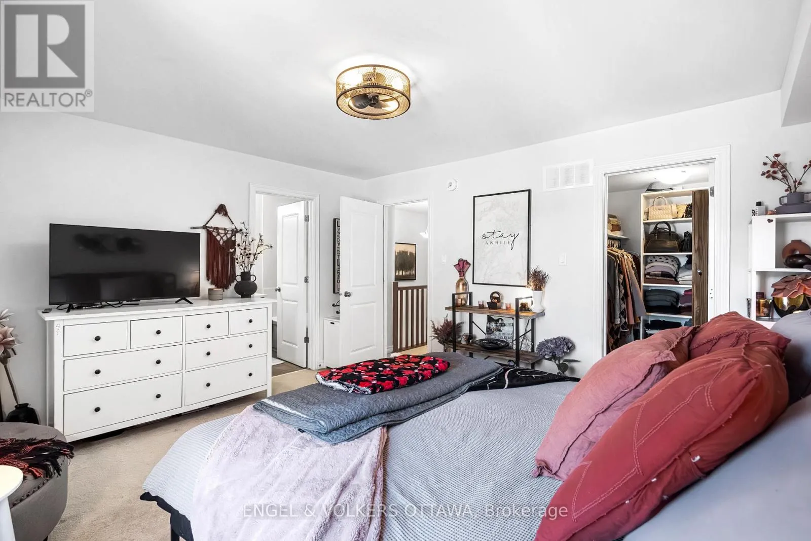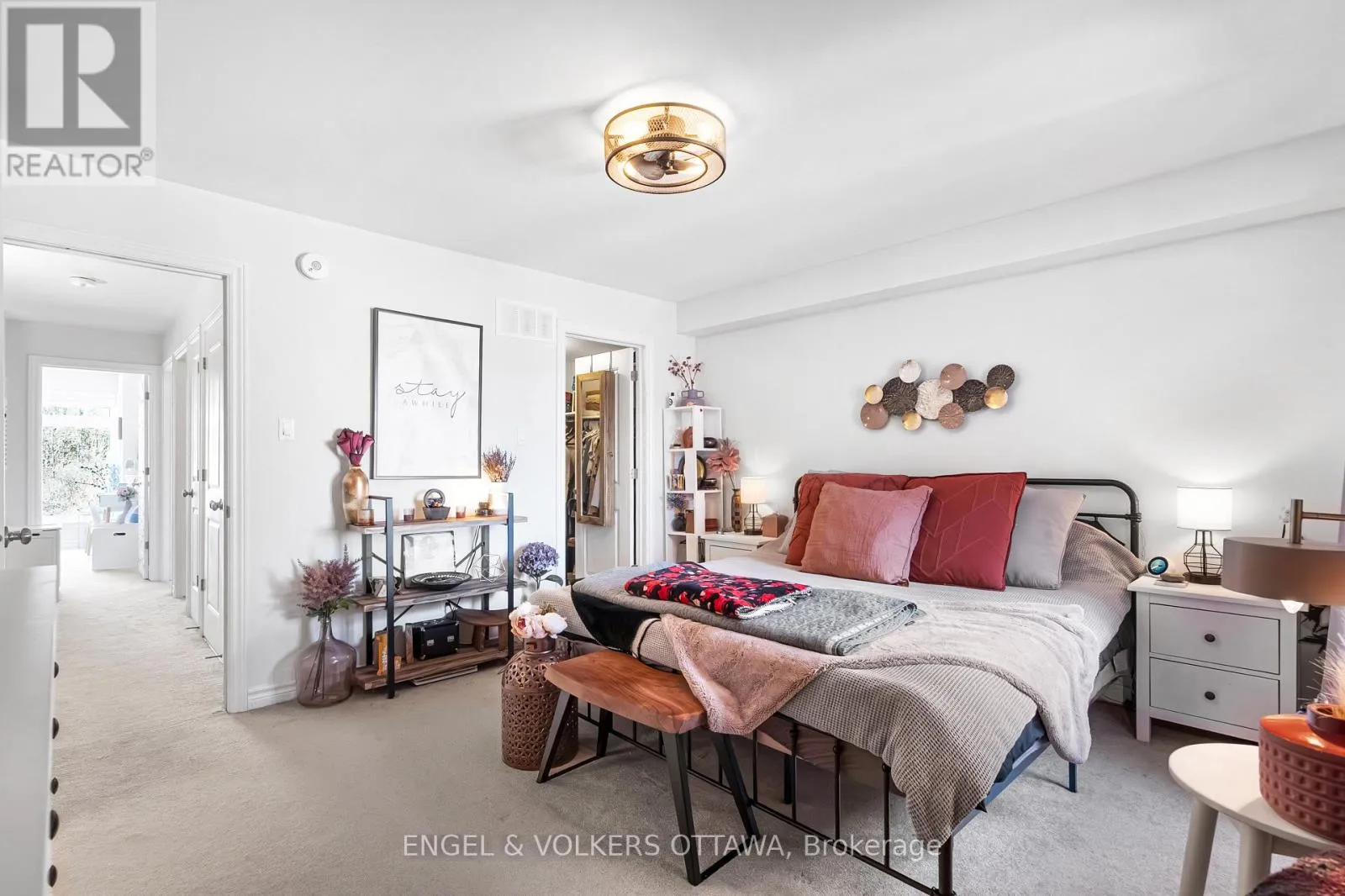 This spacious and bright Richcraft Addison model townhome in Findlay Creek features an open concept layout with modern finishes throughout, including hardwood flooring and quartz countertops in the kitchen. The main level offers a sun-filled living room with cathedral ceilings and a cozy gas fireplace. The second level includes a generous primary bedroom with a walk-in closet and a 4-piece