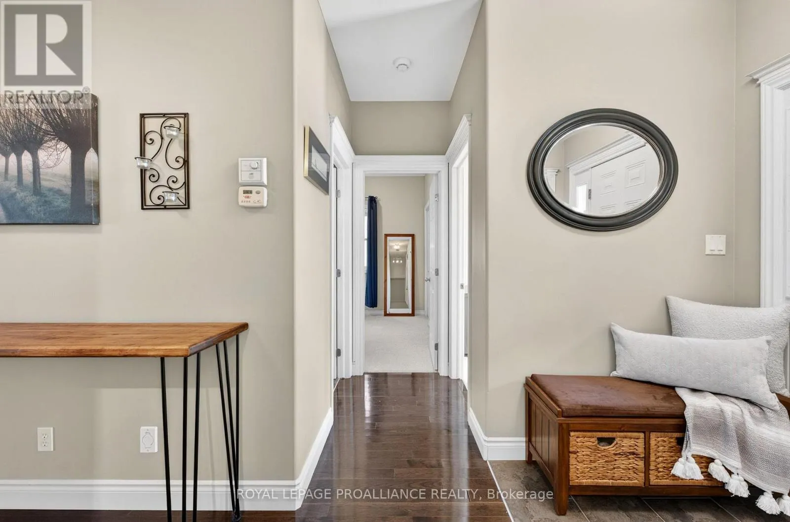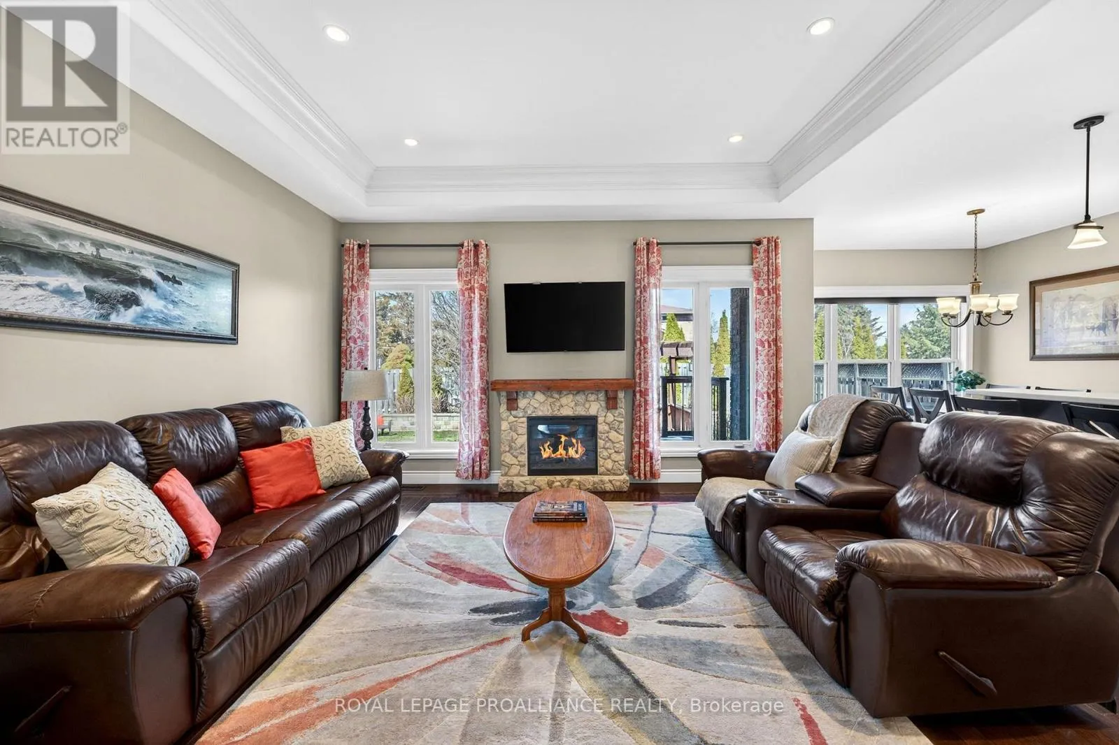 Welcome to this meticulously maintained all-brick bungalow nestled in one of Belleville’s most desirable, established neighbourhoods. This home radiates pride of ownership, blending sophisticated design with functional family living. Step through the front door into a large, inviting foyer featuring durable ceramic tile. The expansive living room serves as a true centrepiece, boasting a stylish tray ceiling and gleaming hardwood