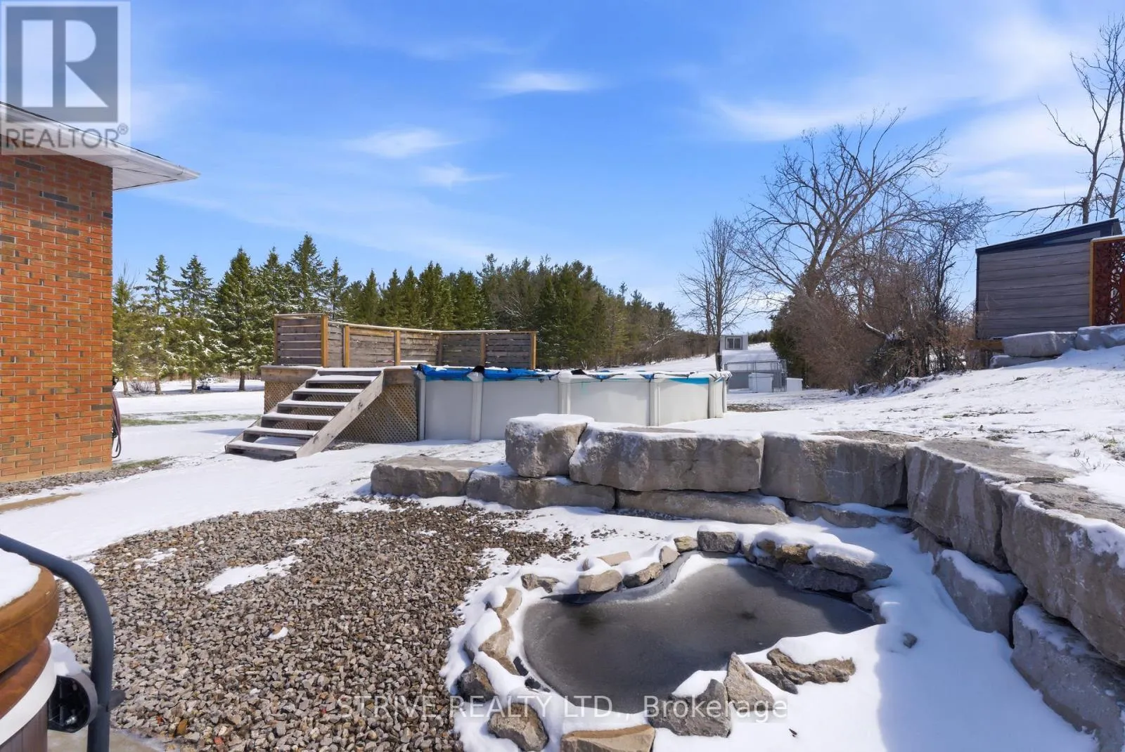 Set in a tranquil part of town with school bus pickup just steps from the driveway, this beautifully updated 3-bedroom, 2-bathroom backsplit offers a perfect blend of modern comfort and serene country living. Resting on nearly 1 acre (0.96 acres) of landscaped land, the property boasts a massive circular driveway, mature trees, and an exceptional outdoor oasis featuring an above-ground