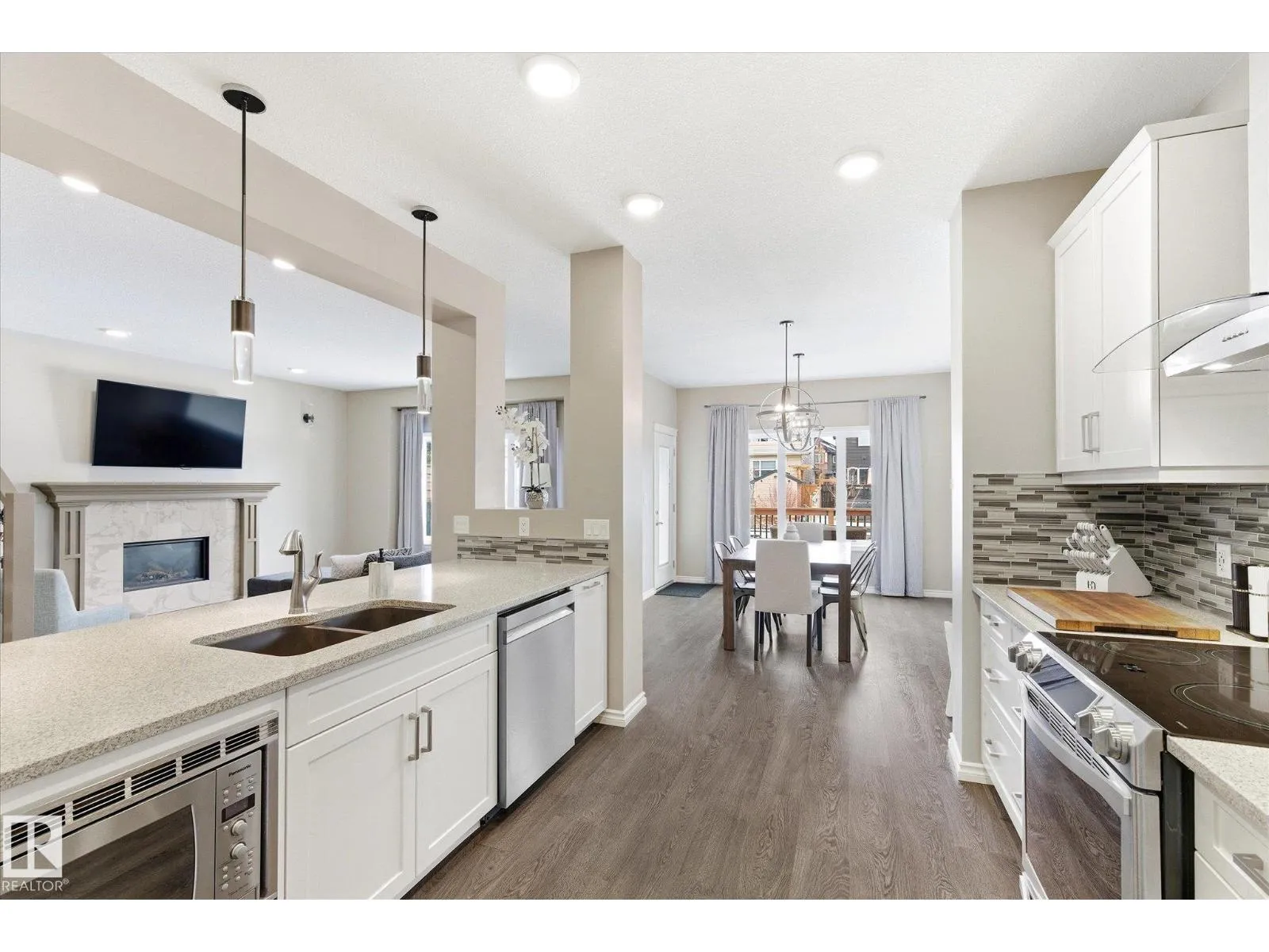 Welcome to this STUNNING 3-bedroom, 2.5-bathroom home in the desirable lakeside community of Trumpeter. BACKING ONTO A SCENIC WALKING TRAIL, this property offers the perfect blend of tranquility & convenience in a quiet, family-friendly neighbourhood. The open-concept main floor is designed for modern living,featuring a cozy gas fireplace,a stylish 2- & a sleek contemporary kitchen complete with light cabinetry,quartz countertops,high-end
