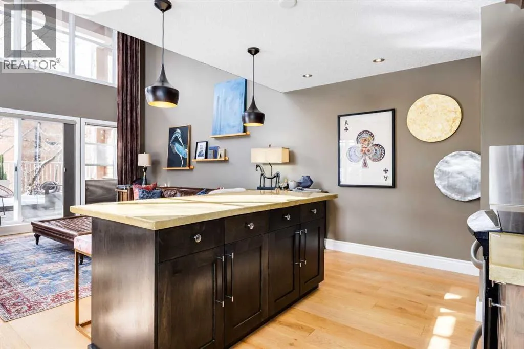 Welcome to this unique loft style residence in the heart of South Calgary, just steps from the vibrant Marda Loop district. This beautifully designed end unit offers a rare two storey living space with dramatic open to above living and dining areas, creating an airy and light filled home. Large windows on two sides allow natural light to pour in