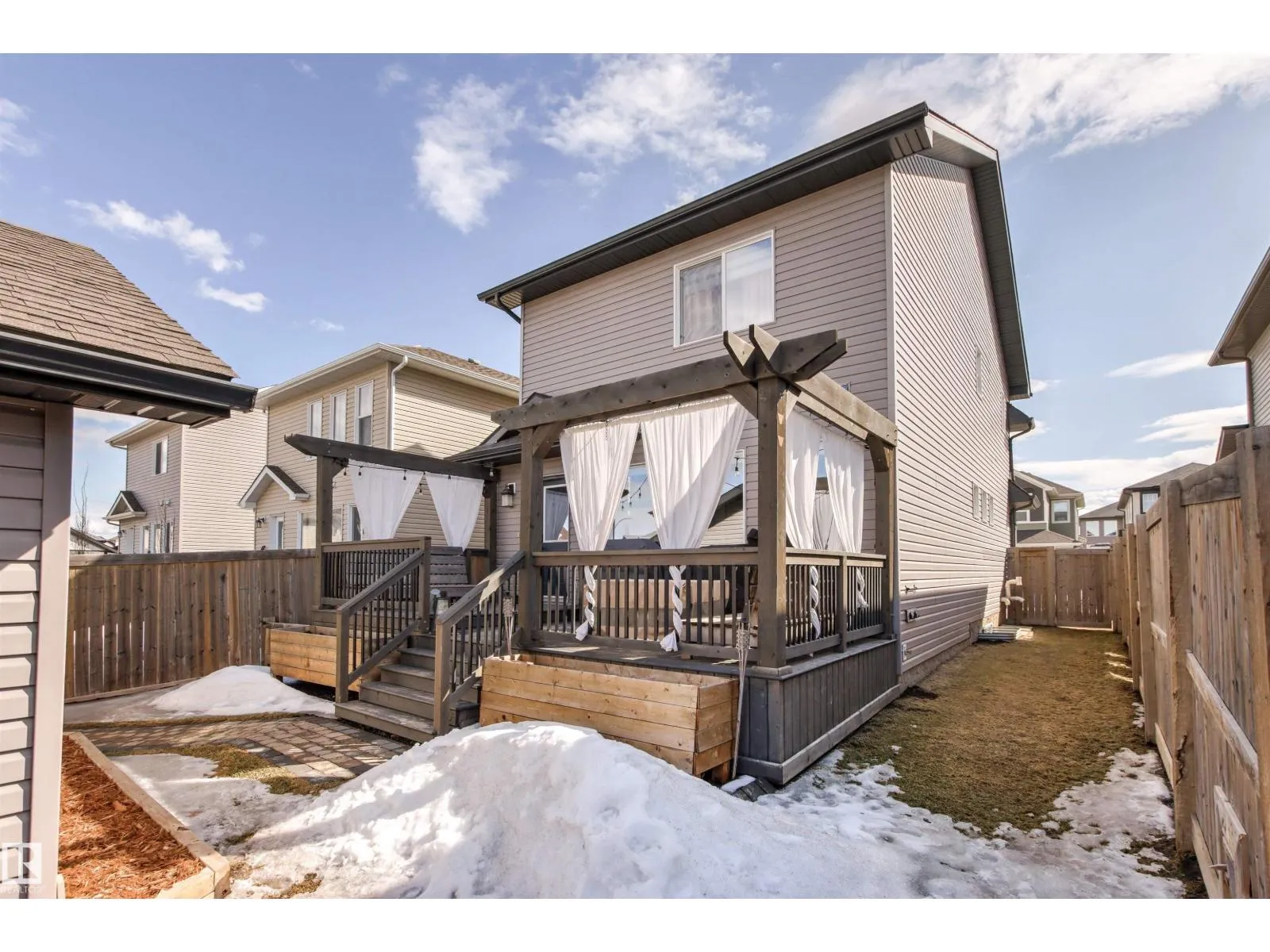 Welcome Home! Functional main floor features a modern kitchen with ample counter space, stainless steel appliances, counter-height seating, and a walk-in pantry. Upstairs offers two spacious primary bedrooms, each with a walk-in closet and private ensuite with double sinks. Convenient second-floor laundry with cabinetry and shelving. High-quality blinds throughout. Beautifully landscaped yard and large custom-built deck welcome you to