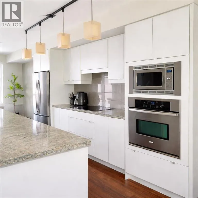 Experience comfort, style and low-maintenance living in this executive end-unit townhouse. The bright, open-concept main floor features a modern kitchen with a large oversized island, granite countertops, built-in oven and stovetop and pantry. Open concept kitchen, dining room and living room creating a welcoming and functional space. A cozy electric fireplace adds warmth and character, plus a convenient 2-piece