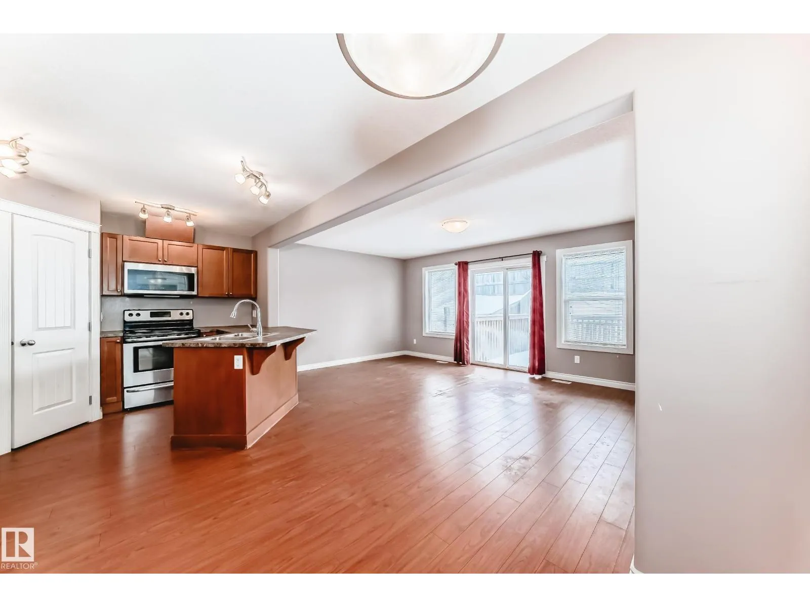 This 2sty half duplex offers 4 bedrooms, 3.5 bathrooms, and a fully developed basement perfect for growing families or those needing extra space. The main floor features a bright open concept with maple cabinetry, stainless steel appliances, and a peninsula island ideal for entertaining. The cozy living room is highlighted by a gas fireplace, with patio doors leading to a