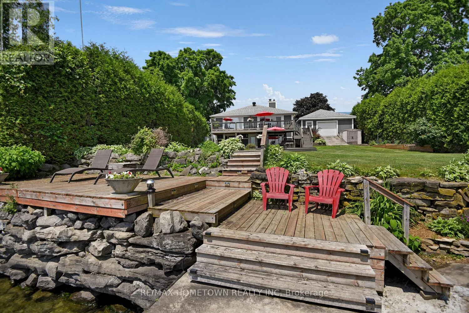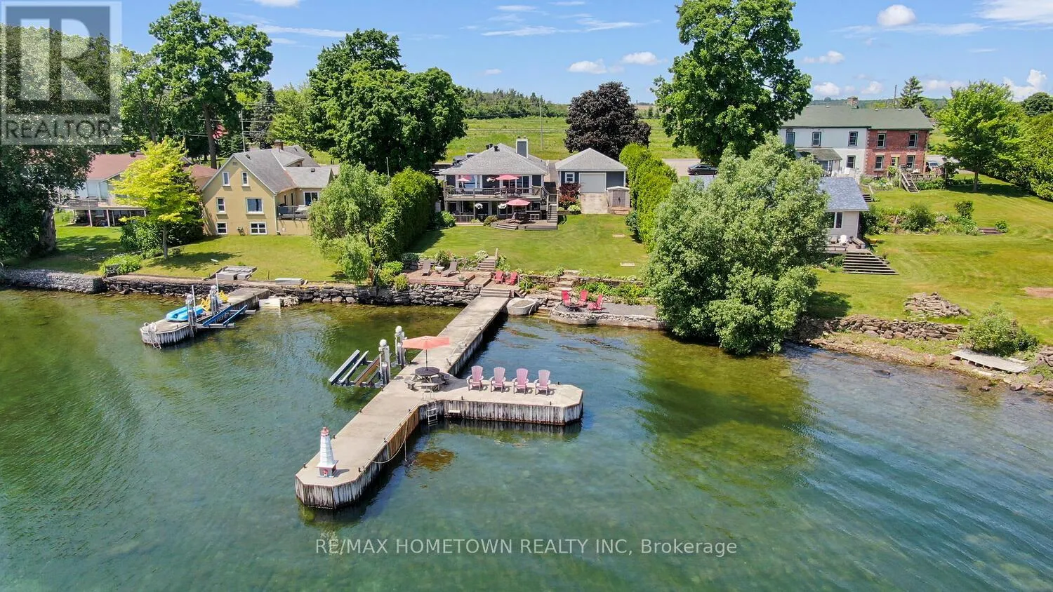 Stunning Riverfront- Entertainer’s Dream – Key Features – Bedrooms: 3 + potential 4th in lower level, Bathrooms: 2 full (one on each level) Size: Over 3,000 sq ft (including finished walk-out lower level) Garage: Detached 2-car, 24′ x 32′ with rear door onto the waterside. Dockage: 100 ft main dock + 30 ft extension east, 7,000 lb boat lift. Main