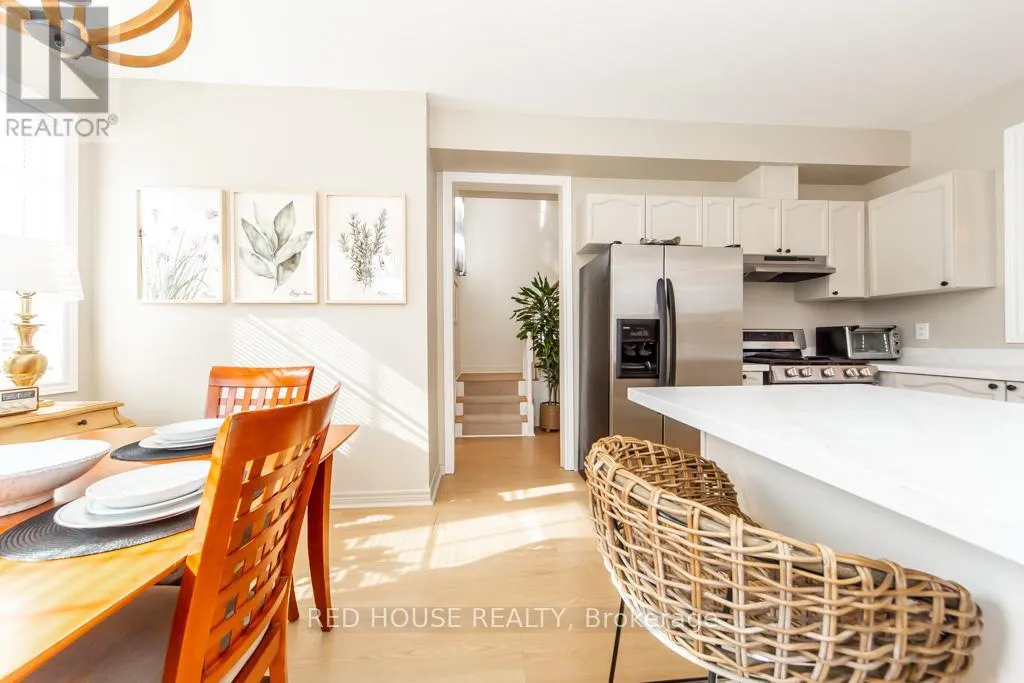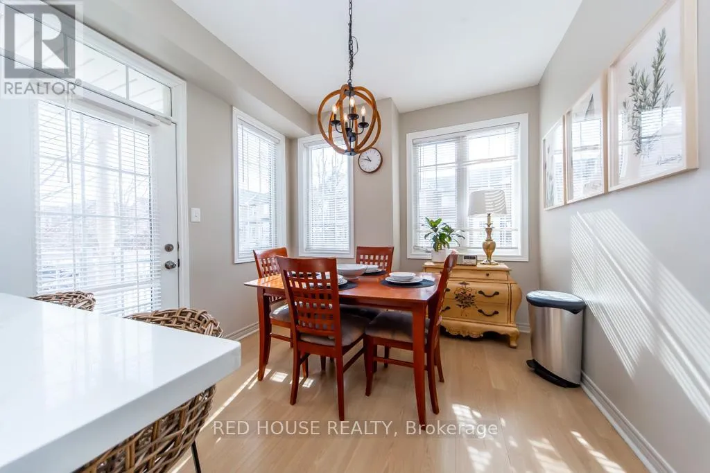 Gorgeous End Unit Townhome in Picturesque & Quiet Neighbourhood. Low Maintenance Fees! Includes Water! Close to the Lake. Sun Filled Space. Excellent & Efficient Layout. Stunning 9 Ft Ceilings. Warm Colours & Decor. Laminate Floors Throughout. Open Concept Living/Dining Area. Two Main Entrances. Close to the Garage and to Visitor’s Parking. Large Eat In Kitchen w/ Quartz Counters, Stainless