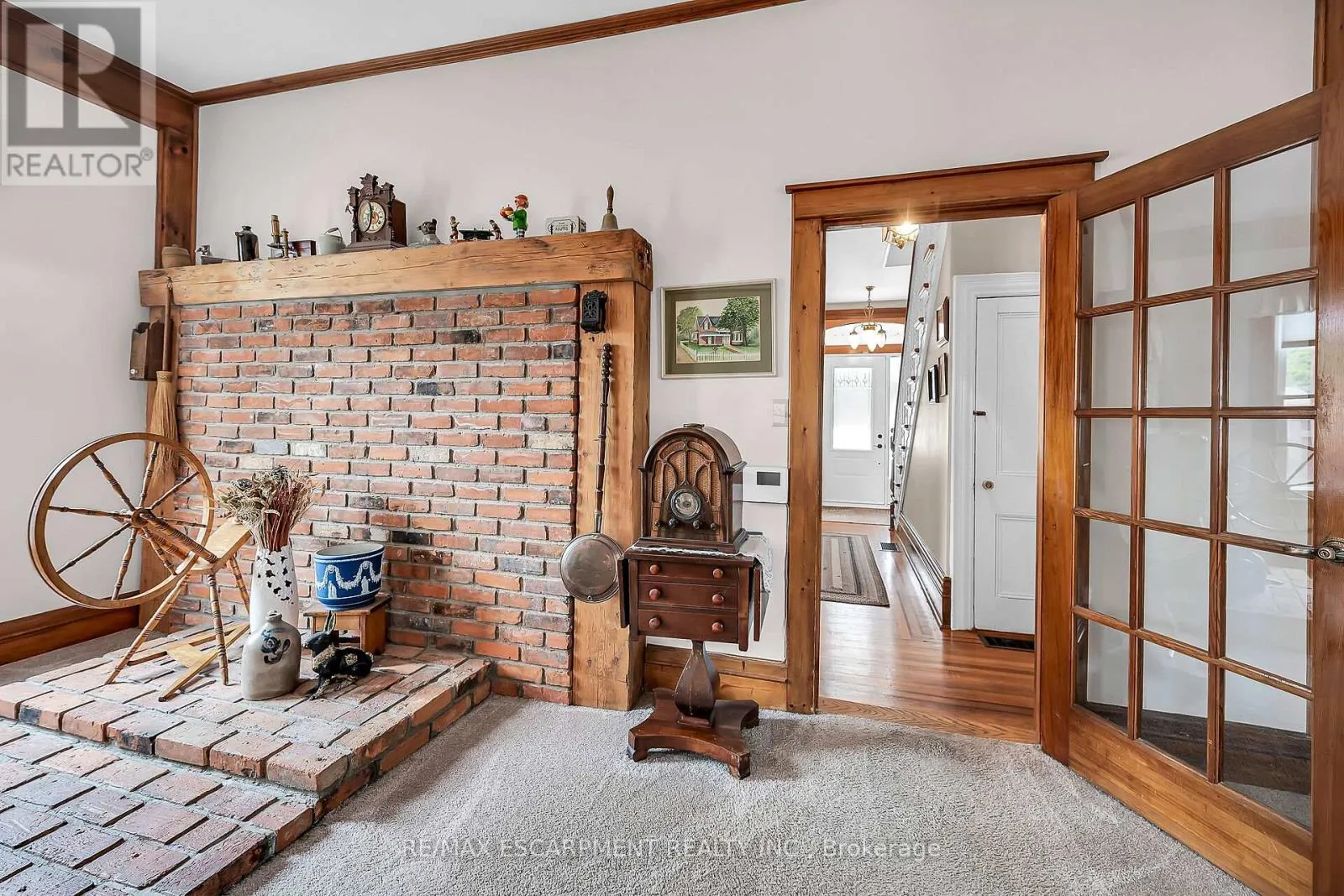 main floor to the gleaming pine and oak flooring and the impressive 1-foot baseboards and wood trim that grace every room. With nearly 3500square feet of living space, this spacious residence offers an abundance of room to spread out and enjoy, featuring 4 generously sized bedrooms, 3.5 well-appointed bathrooms, and a host of inviting living spaces that are perfect for relaxing and entertaining. The grand living room and formal dining room boast stunning beamed ceilings and an air of sophistication, while the cozy main floor family room invites you to curl up with a good book or gather with loved ones. The eat-in kitchen and separate dinette provide ample space for casual meals and lively conversation, and the convenient main floor laundry and powder room add an extra layer of practicality. Upstairs, a versatile loft space offers endless possibilities, whether you envision a teen retreat, a granny flat, or a creative studio. Two stairways provide easy access between floors, and modern amenities like central air conditioning and a central vacuum system ensure your comfort and convenience. Outside, an attached garage with drive-through capability provides sheltered parking, while the expansive 75′ x 150′ lot features a sweeping semi-circular driveway with plenty of space for guests, a large shed for storing garden equipment, and a charming covered front porch that’s perfect for whiling away a lazy afternoon. This extraordinary property is more than just a home – it’s a portal to a bygone era, a place where you can immerse yourself in the rich history and timeless appeal of a genuine 1890s farmhouse. (id:62650)