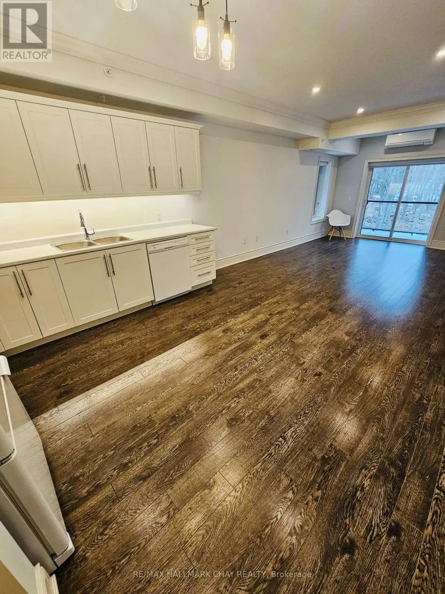 Approx. 875 Sq Ft ‘Keystone’ Condo at the Granite Harbour development on Georgian Bay. Top Floor unit includes 1 Bedroom with walk-in closet, den with closet, 1 bathroom with walk-in shower, in-floor radiant heat, A/C, in-suite laundry, HRV ventilation system, LED pot lights and crown moulding in kitchen/dining/living areas. Entire unit is carpet-free with laminate