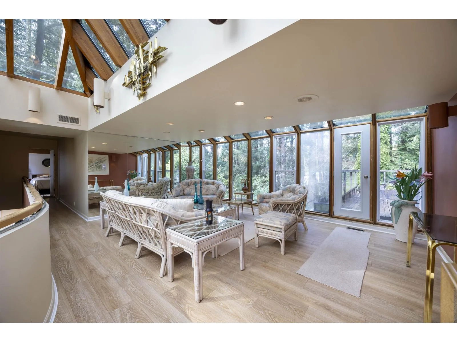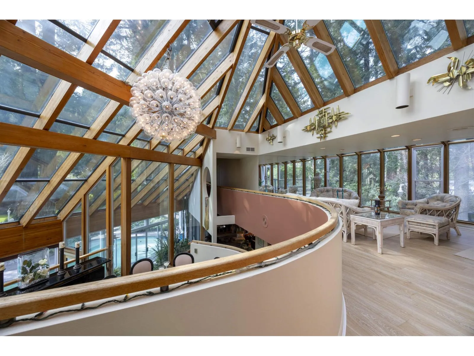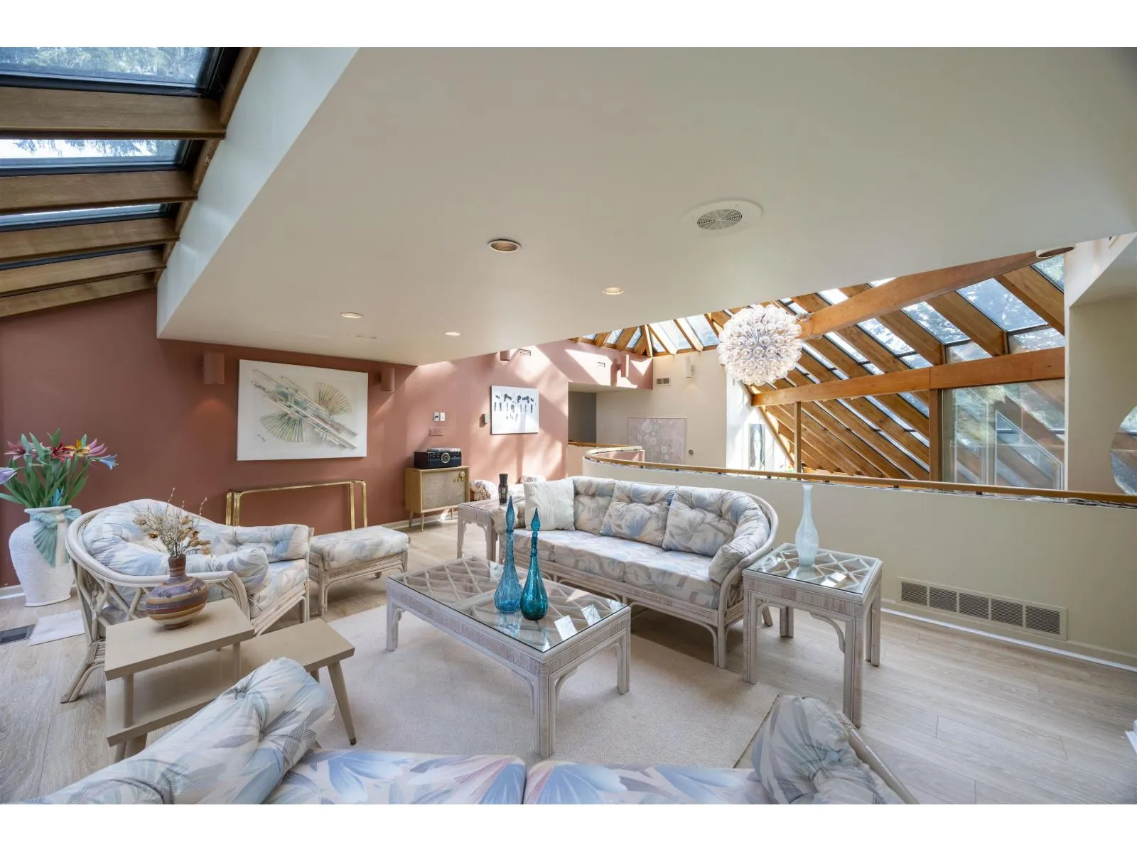 Located in the Elgin Chantrell area of South Surrey, this unique property on 1.05 acres is truly a stunning living space. With a generous 4035 square feet of living area, the design is thoughtfully crafted, blending modern aesthetics with natural harmony. The interior is spacious and bright, featuring a dual-sided wood-burning fireplace that adds warmth and creates a cozy atmosphere