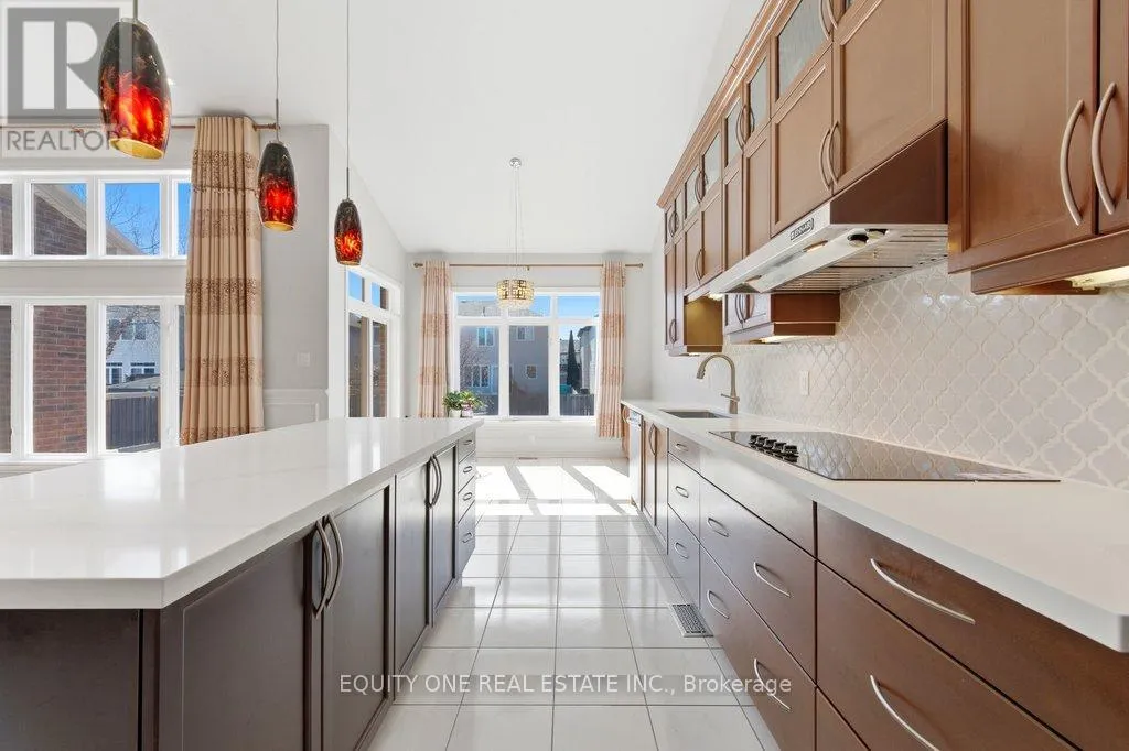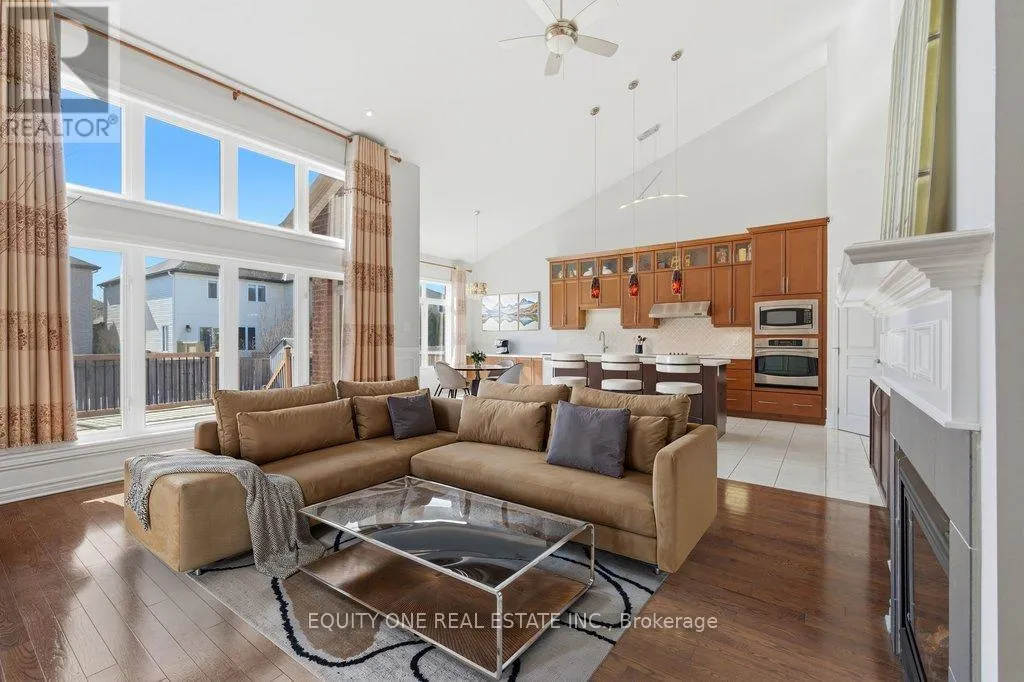 Welcome to this exceptional detached 5+2 bed/4 bath, sun-filled home in the highly sought-after community of Riversedge, offering a rare and versatile layout ideal for large, multi-generational, or blended families.The main level is designed for both comfort and impressive entertaining, featuring beautiful hardwood floors and tile throughout, along with a stunning living room highlighted by floor-to-ceiling windows that flood the