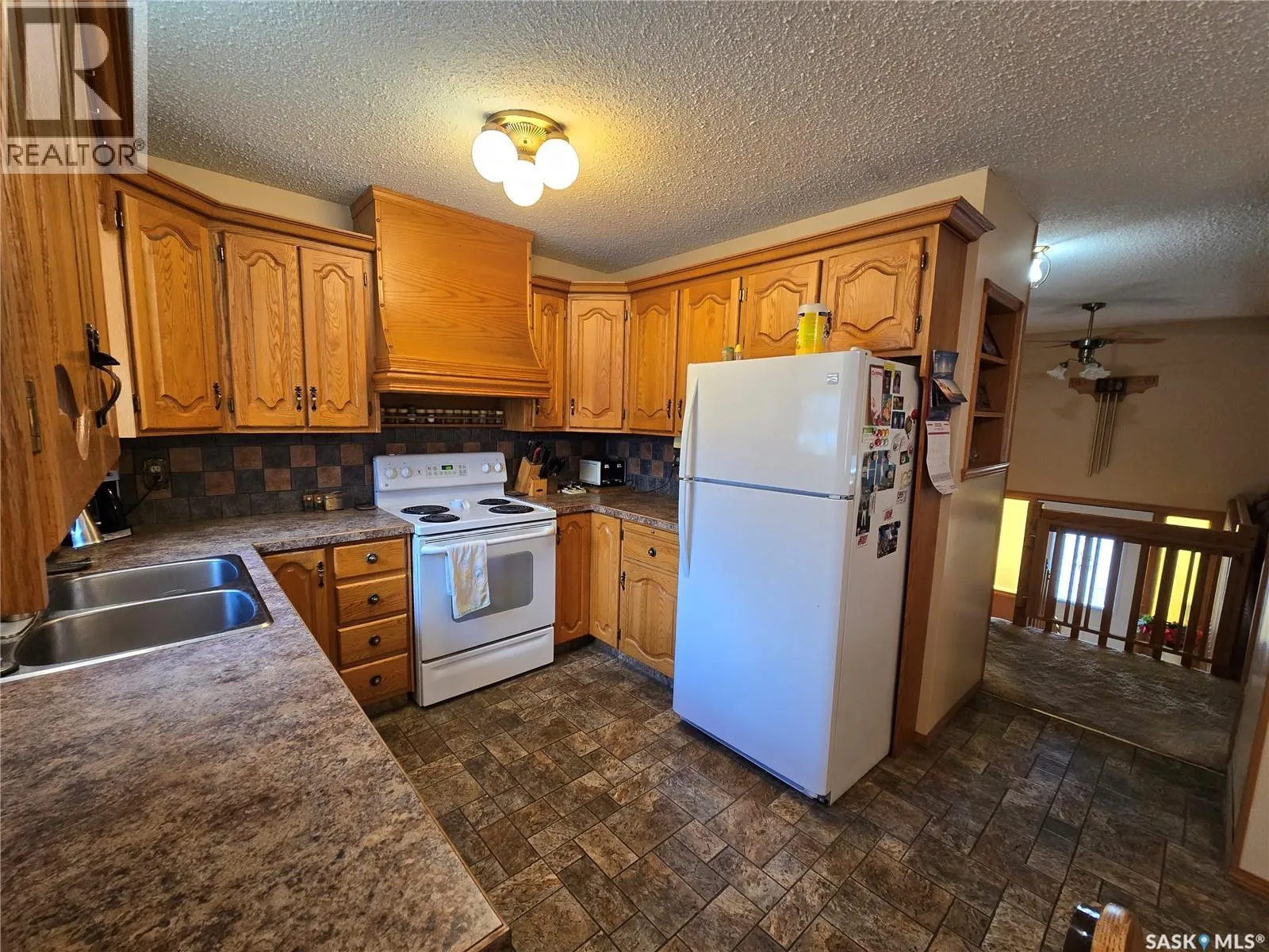 Nestled in the highly desired Trail subdivision, this classic Tudor-inspired bi-level makes a striking first impression with its signature decorative timbering and stucco exterior. Spanning over 1,400 sq. ft., the home radiates a warm, timeless character, anchored by extensive custom oak woodwork and craftsmanship throughout. The heart of the home is the grand living room, where soaring vaulted ceilings and