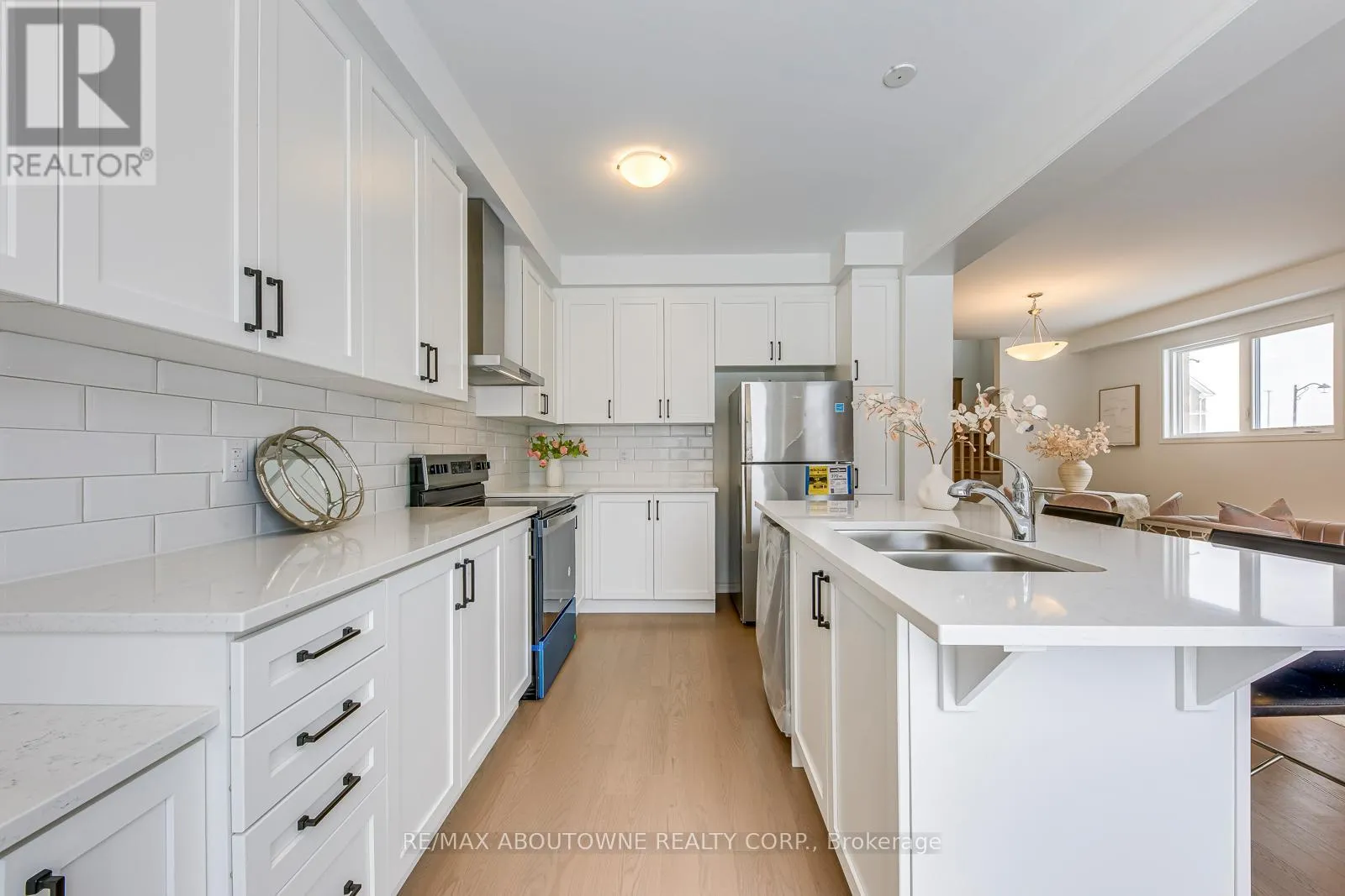 One-year-new, never-lived-in fully upgraded 1938 sq. ft. end unit townhouse located on a quiet street of Milton’s mostdesirable new development subdivisions. This sun-filled home offers a thoughtfully designed layout featuring 4 spacious bedrooms, 3 modernwashrooms, 2 walk-in closets and 9 feet ceilings on both main and second floor. The open-concept main floor features abundant natural light,and a modern kitchen with