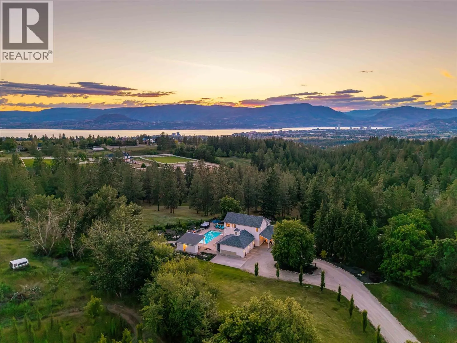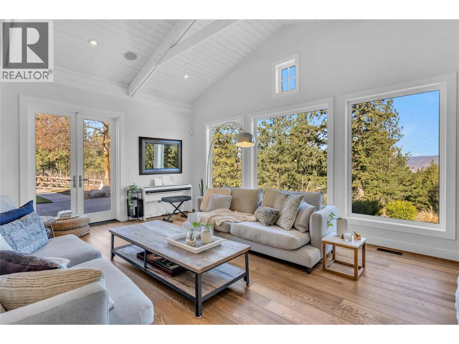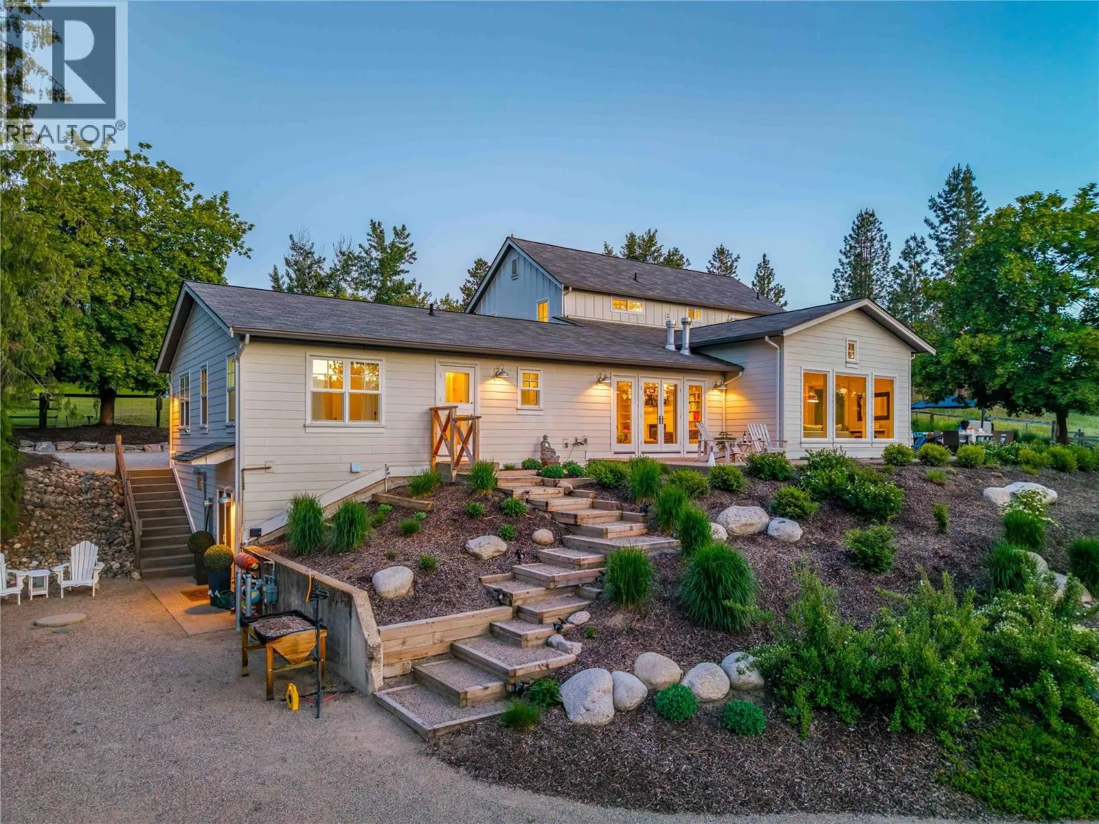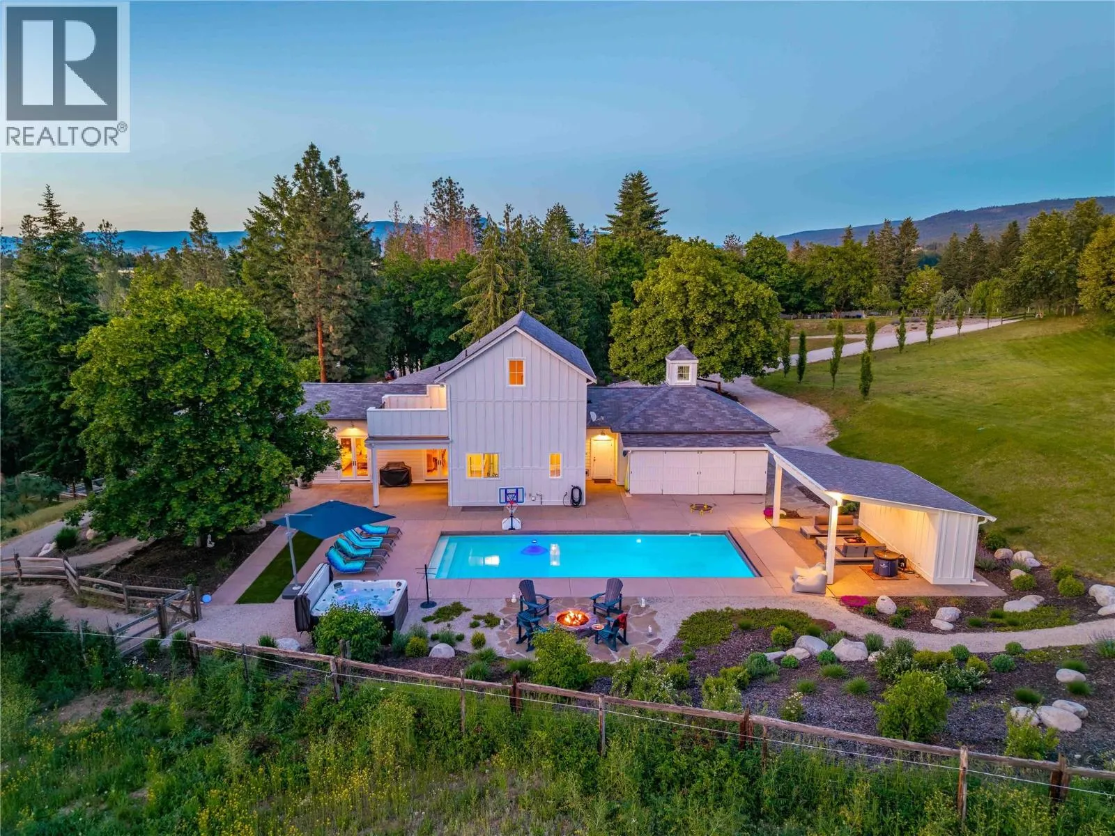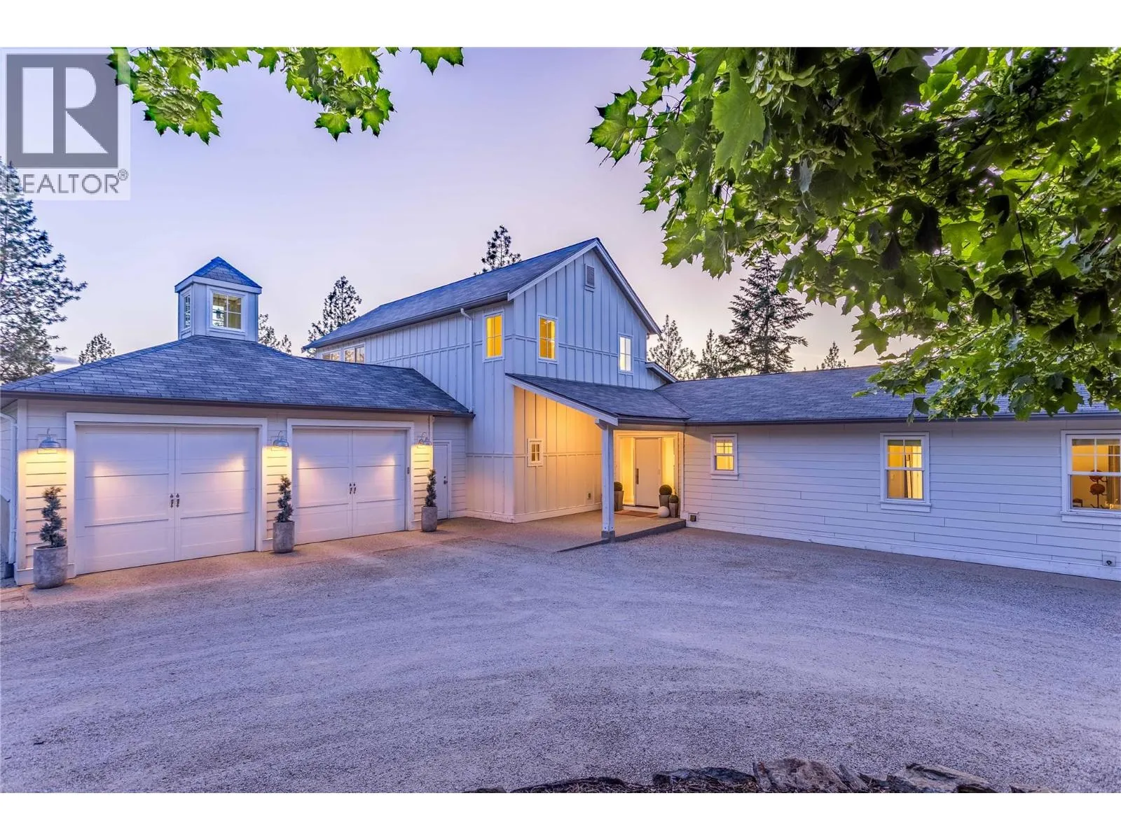 Tucked away on 4.25 private acres in Southeast Kelowna, this modern farmhouse offers refined living and complete seclusion. Thoughtfully designed and surrounded by nature, this property feels worlds away, yet remains effortlessly connected to everything that matters. Welcome to your private sanctuary in Southeast Kelowna, where nature and everyday luxury come together. Mature trees surround this modern farmhouse, and 5,600
