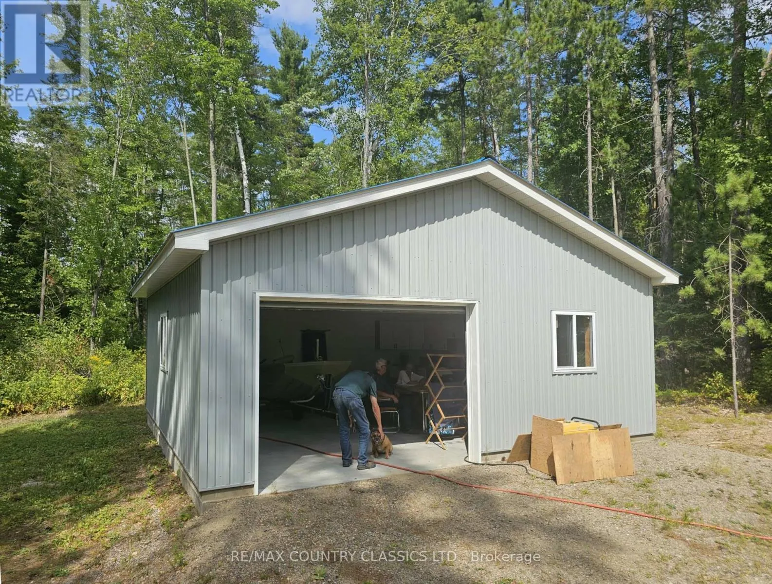 Barry’s Bay – 1.5-acre remarkable lot within walking distance of village. Driveway installed. Hydro, drilled well, and septic already in place. Includes a detached 1.5-car garage, pole shed, and sugar shack. Oversized,treed, private rear area perfect to build your home. Located in a quiet residential neighborhood. Note: behind the garage area is approx 200′ x 200′ area to