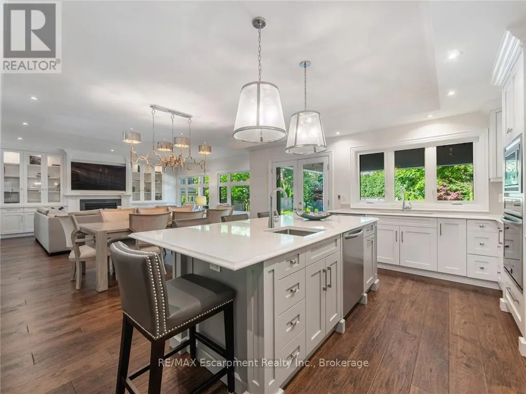 Set on prestigious Lakeshore Road in Roseland one of Burlington’s most sought-after neighbourhoods this custom-built residence offers over6,000 square feet of finely finished living space on a rare217-ft-deep property. Located within the Tuck/ Nelson school district, just steps from the lake, it combines an exceptional address with remarkable scale and design. The main level is anchored by an elegant great