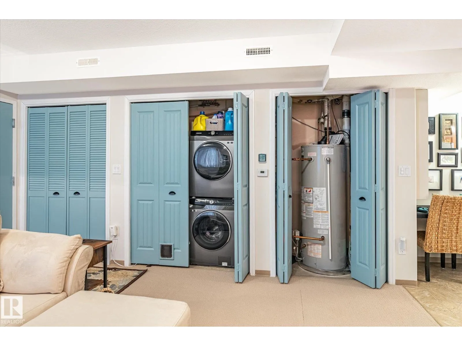 Welcome to this well appointed one-bedroom apartment style condo that perfectly blends comfort and functionality. With its own private entrance complete with a covered patio, keypad entry, and cozy seating area, you’ll feel right at home the moment you arrive. Inside, the open-concept living and dining area is warm and inviting, featuring plush carpeting, abundant natural light, and thoughtful touches