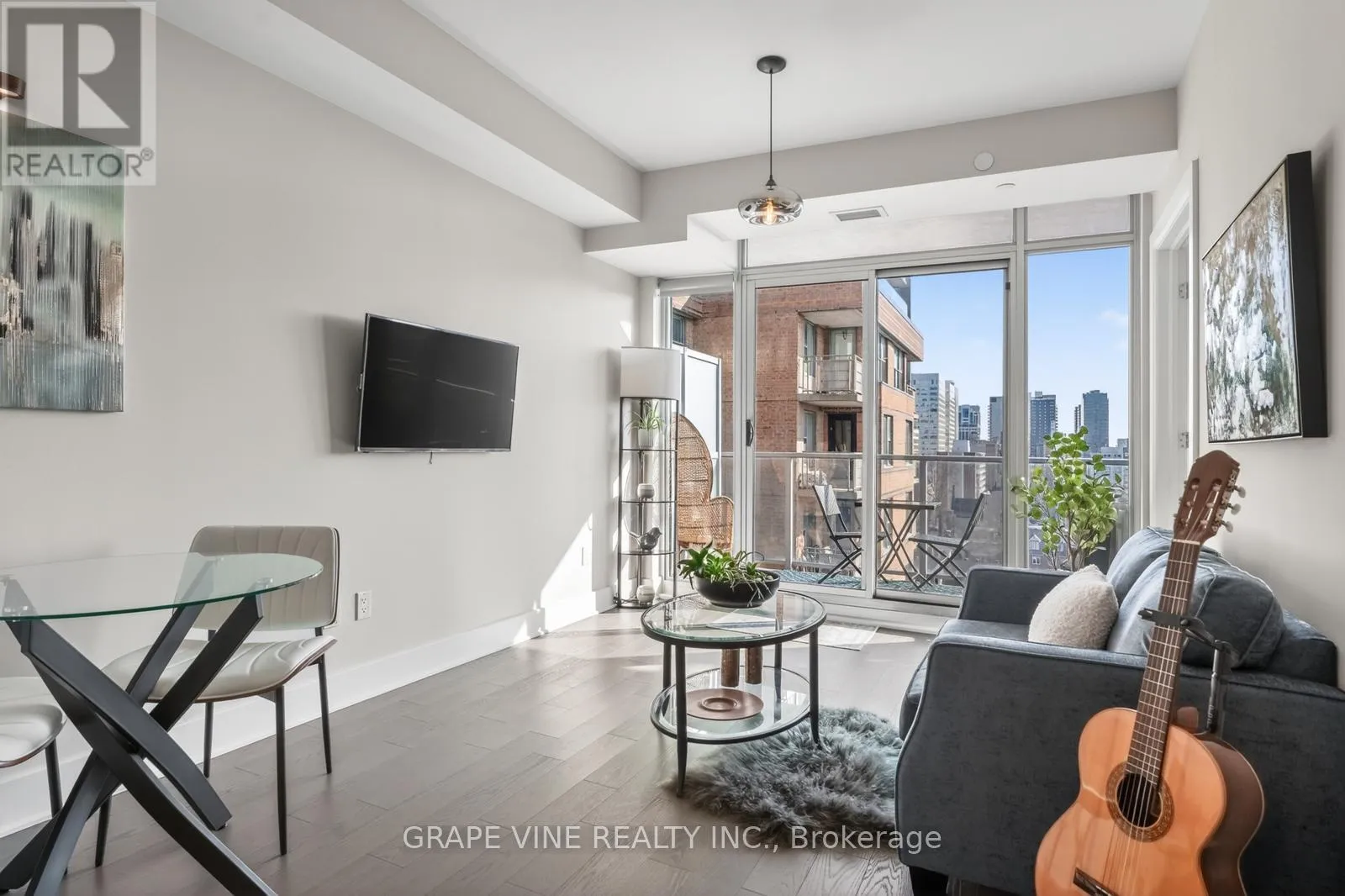Bright 1-Bedroom + Large Den at 255 Bay Street – Oversized Balcony, Modern Kitchen, and Stunning Downtown Views. Welcome to this beautifully designed 1-bedroom plus large den condo at 255 Bay Street. This warm, spacious suite features an east-facing exposure that fills the home with soft morning light and offers unobstructed downtown views overlooking a historic church-creating a peaceful, open