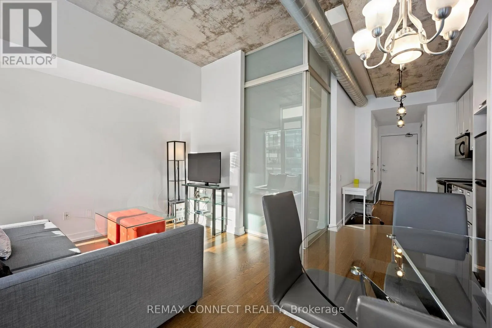 Welcome to 20 Stewart Street, a boutique building in the heart of King West. This bright south facing 1-bedroom suite features floor-to-ceiling windows, a Juliette balcony, and a functional open concept layout with modern finishes throughout. Featuring soaring concrete ceilings and exposed ductwork for a true loft feel. The unit offers a modern kitchen with stainless steel appliances and a