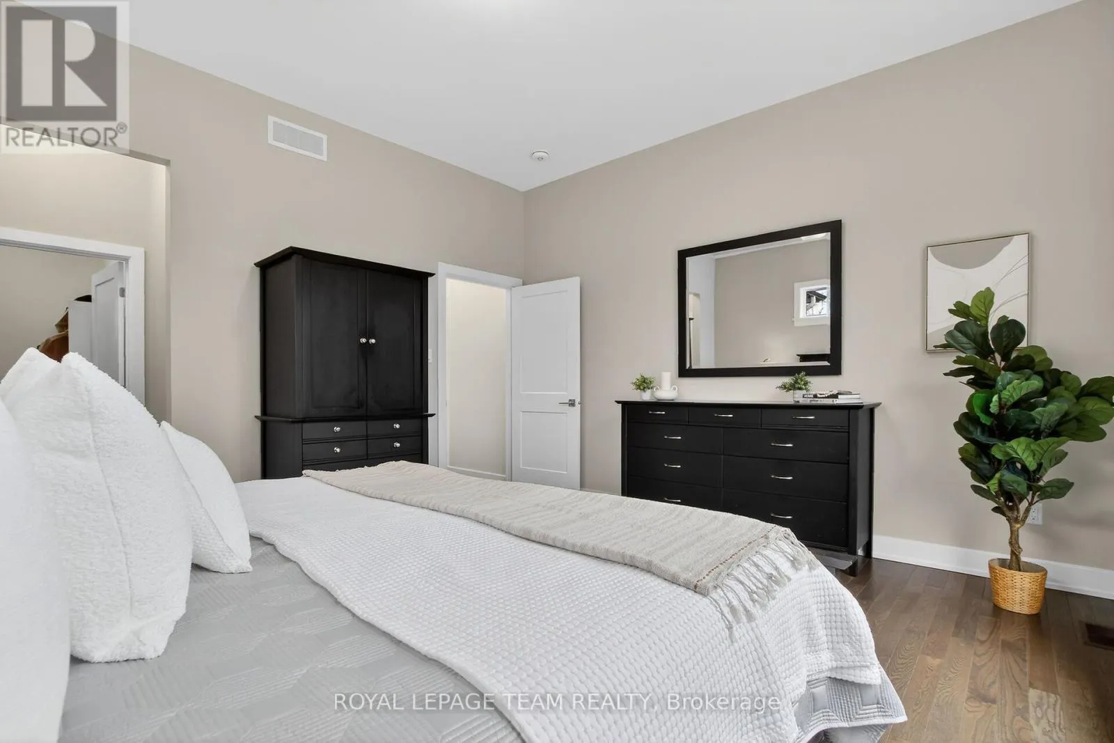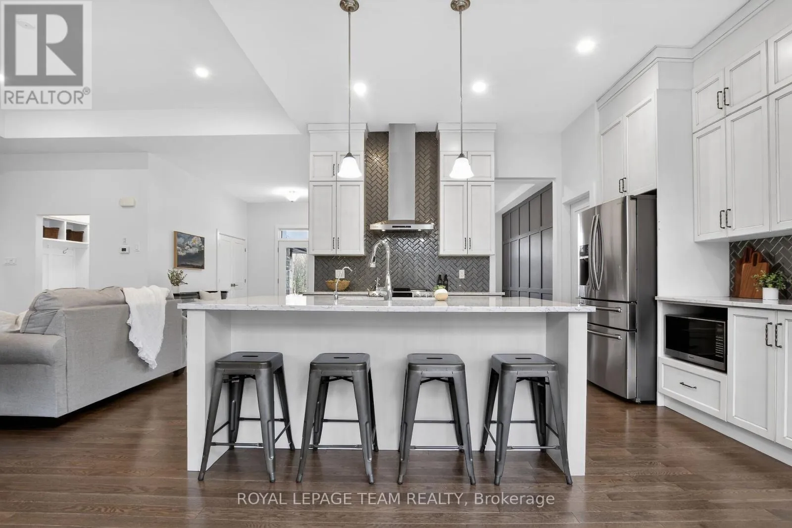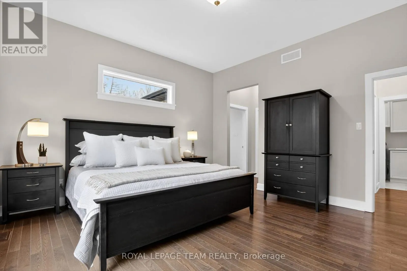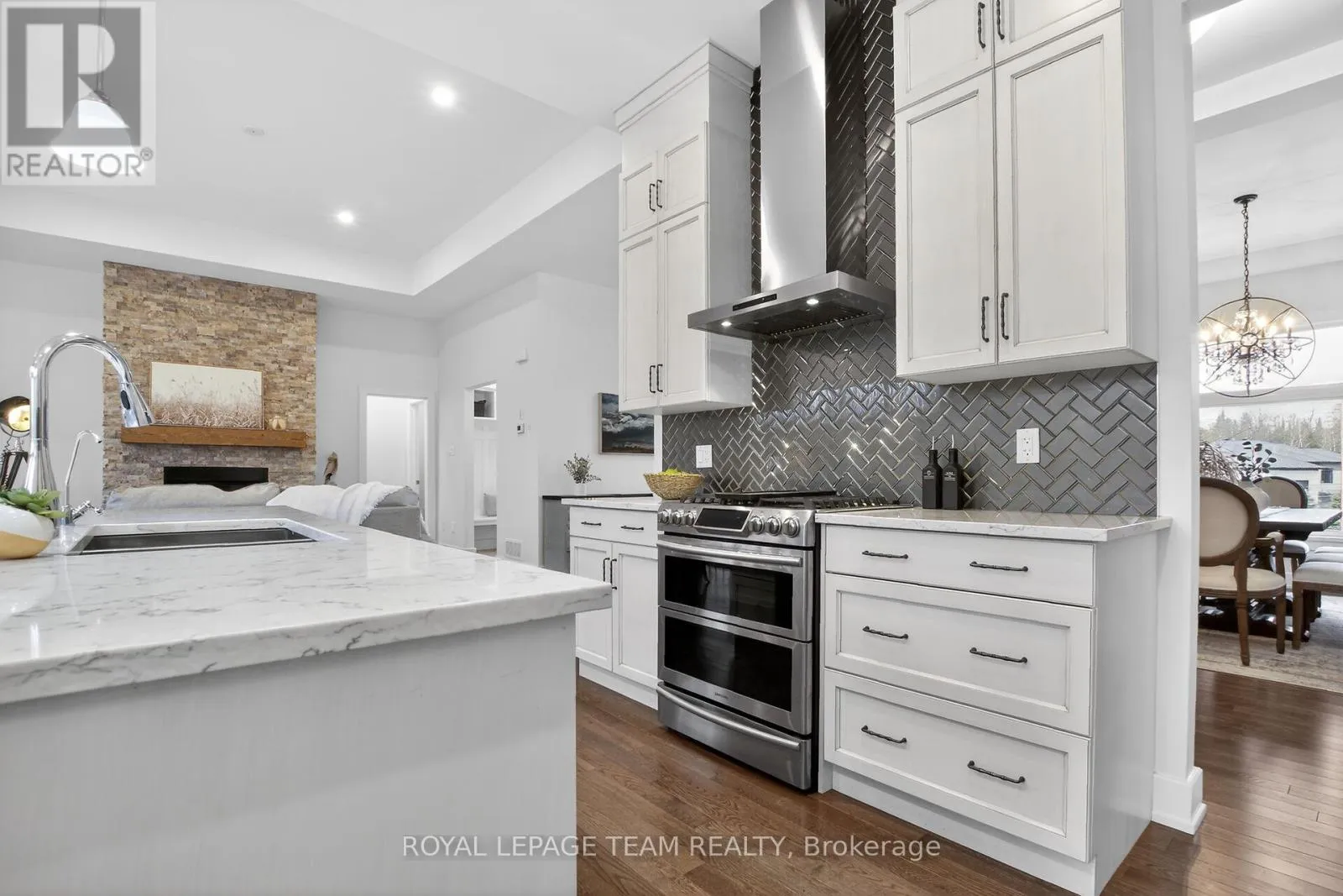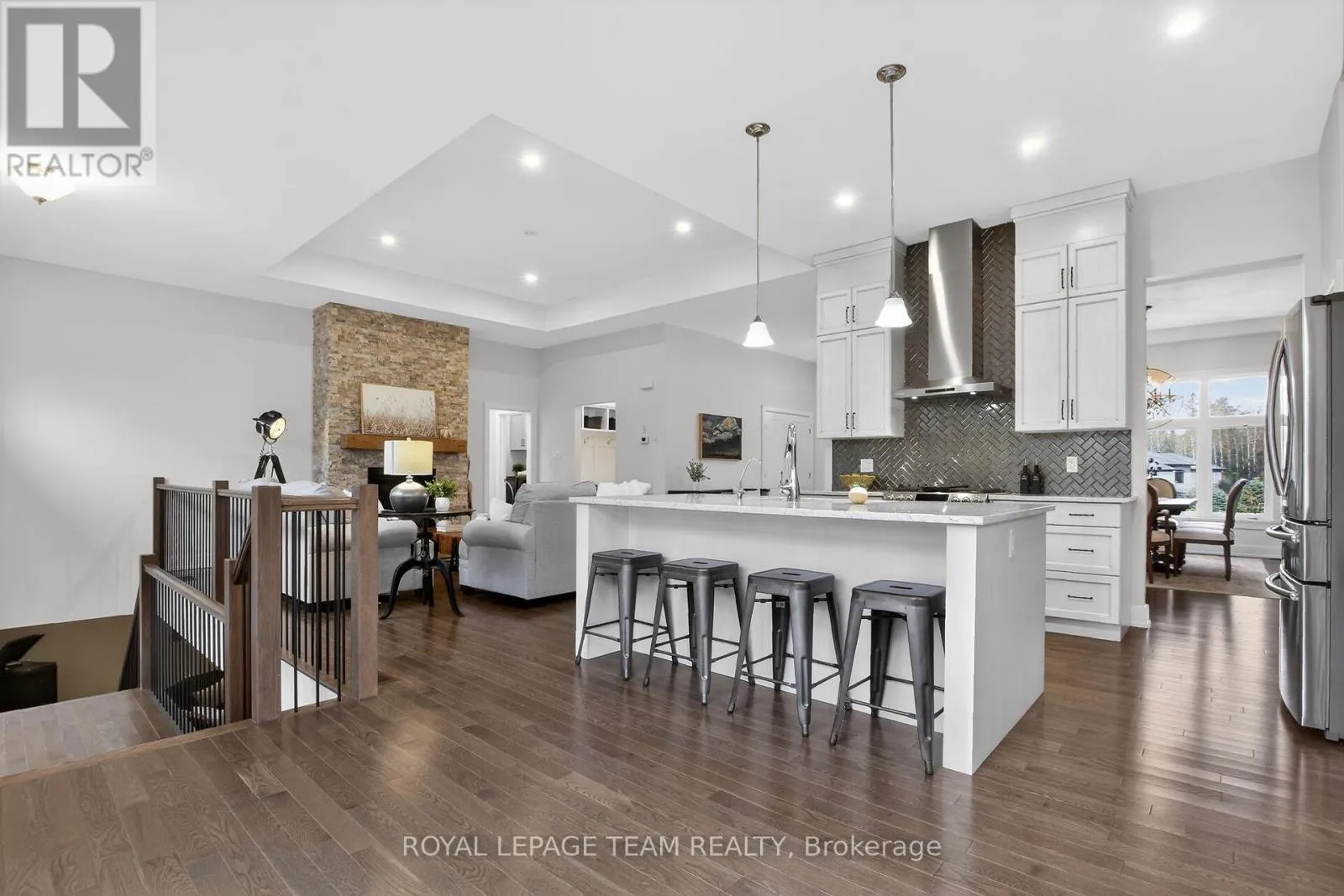 Welcome to this stunning home set back on a mature, tree-filled lot. From the moment you arrive, the pride of ownership is evident with a paved driveway for up to 6 cars, interlock walkways on both sides, striking stone exterior, & sleek black framed windows. Step inside to discover a thoughtfully designed interior featuring 10ft ceilings, rich hardwood flooring throughout.