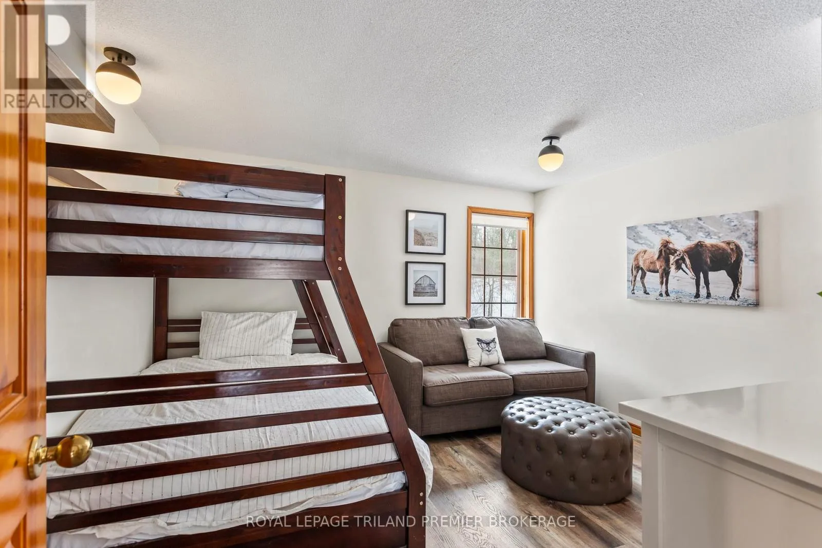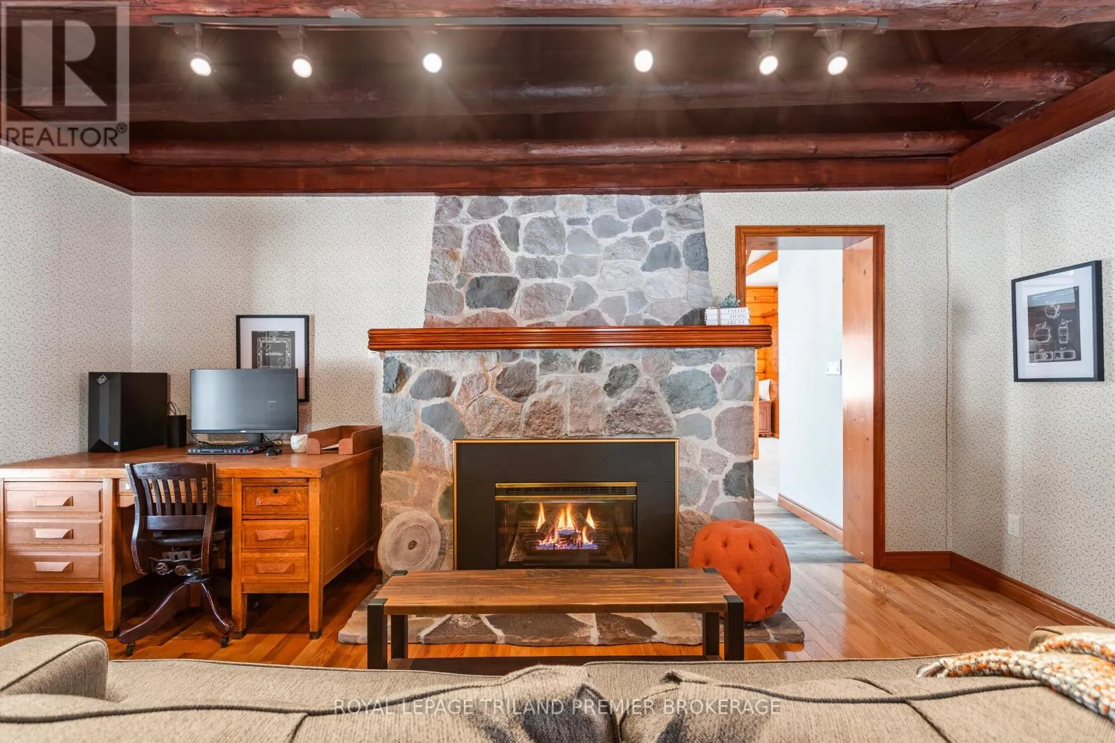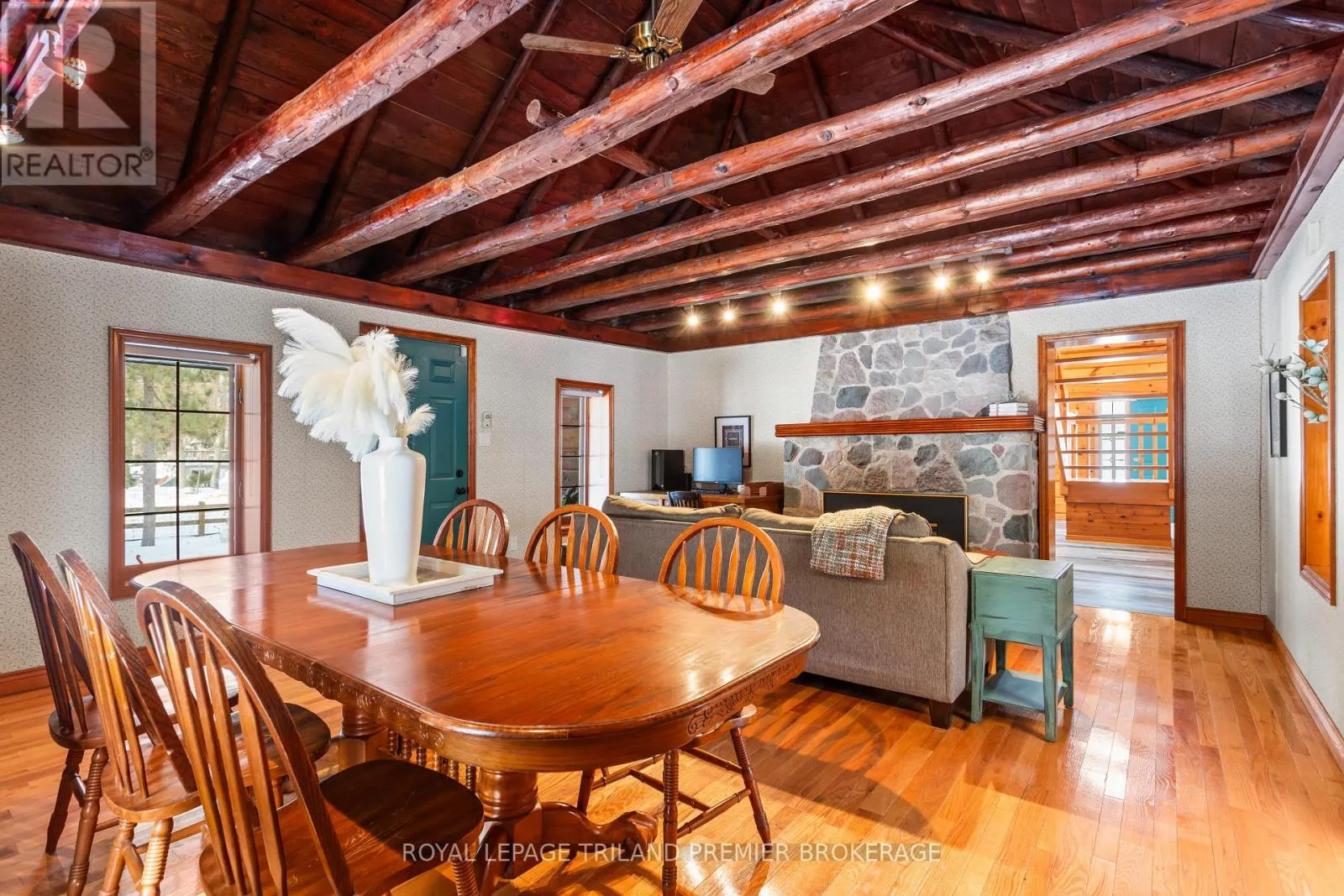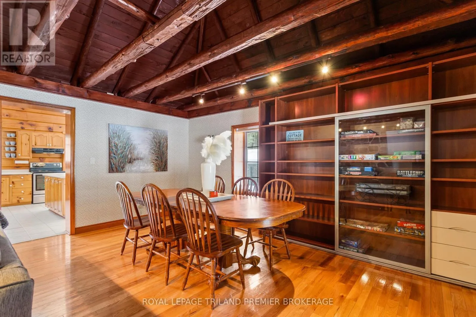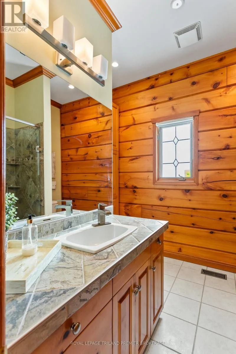 Seize this opportunity to own a piece of history in beautiful Port Franks! This picturesque log cabin is nestled on a mature treed lot and features all the conveniences of modern day living. The generous main floor boasts a cozy dining/sitting room with exposed beams, hardwood flooring and gas fireplace; double height family room with log interior walls, vaulted ceilings,