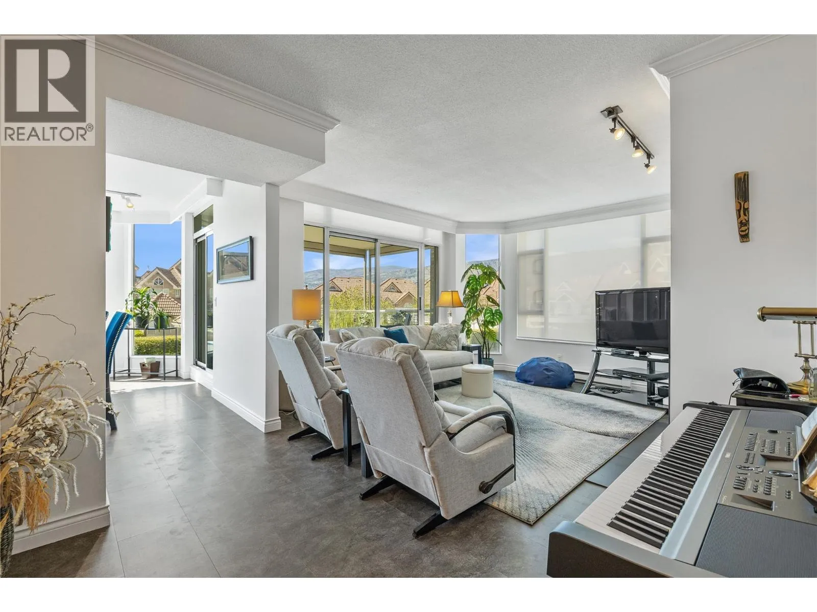 Ideally located in downtown Kelowna, this beautiful spacious 2-bedroom condo at The Lagoons offers over 1,400 sq ft of well-designed living space with lake, mountain & pool views! Entire condo updated and professionally painted. The kitchen has quartz countertops, updated cabinetry, and an island with bar-style seating. The dining room opens up to a living room with gas fireplace. Two