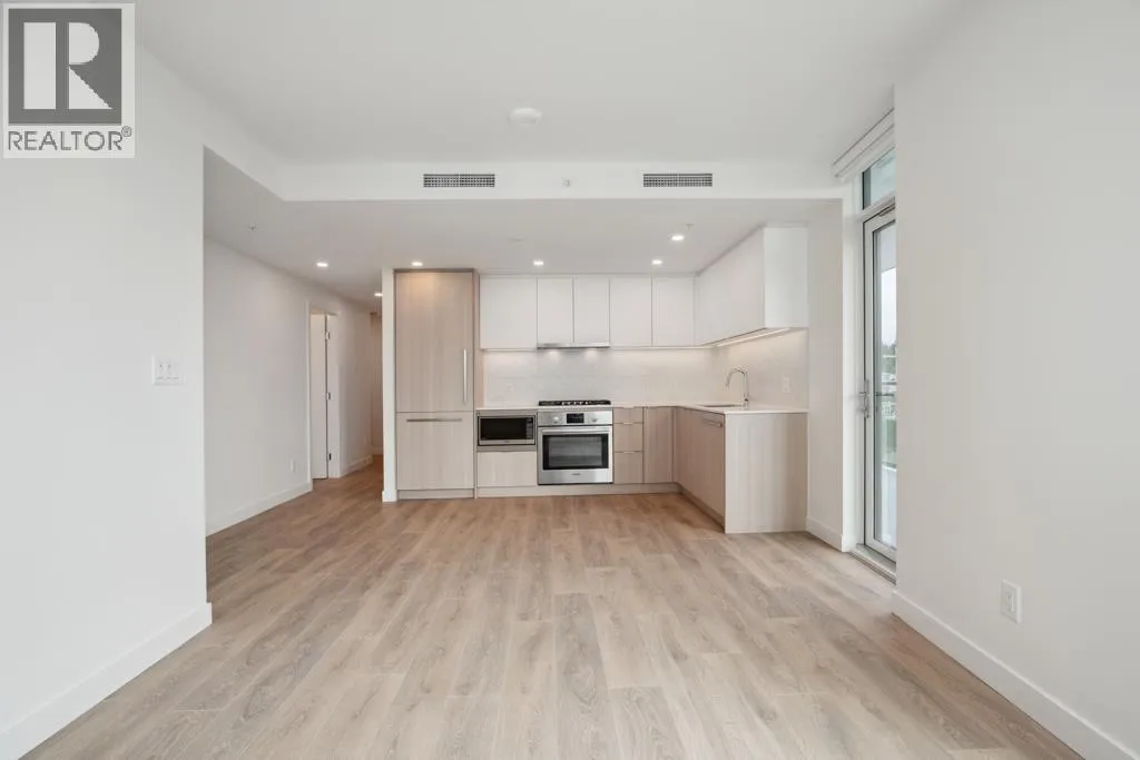 This 772sf luxurious 2 bedrooms 2 bathrooms corner unit has 8.5′ ceilings, roller blinds and an in-home heating and cooling system (system only). The open rectangular living-dining room has lots of natural lights coming in from multiple windows from two sides, access to the huge covered 173sf balcony. The sleek kitchen features two rows of light two-toned cabinets, under-cabinet lights,