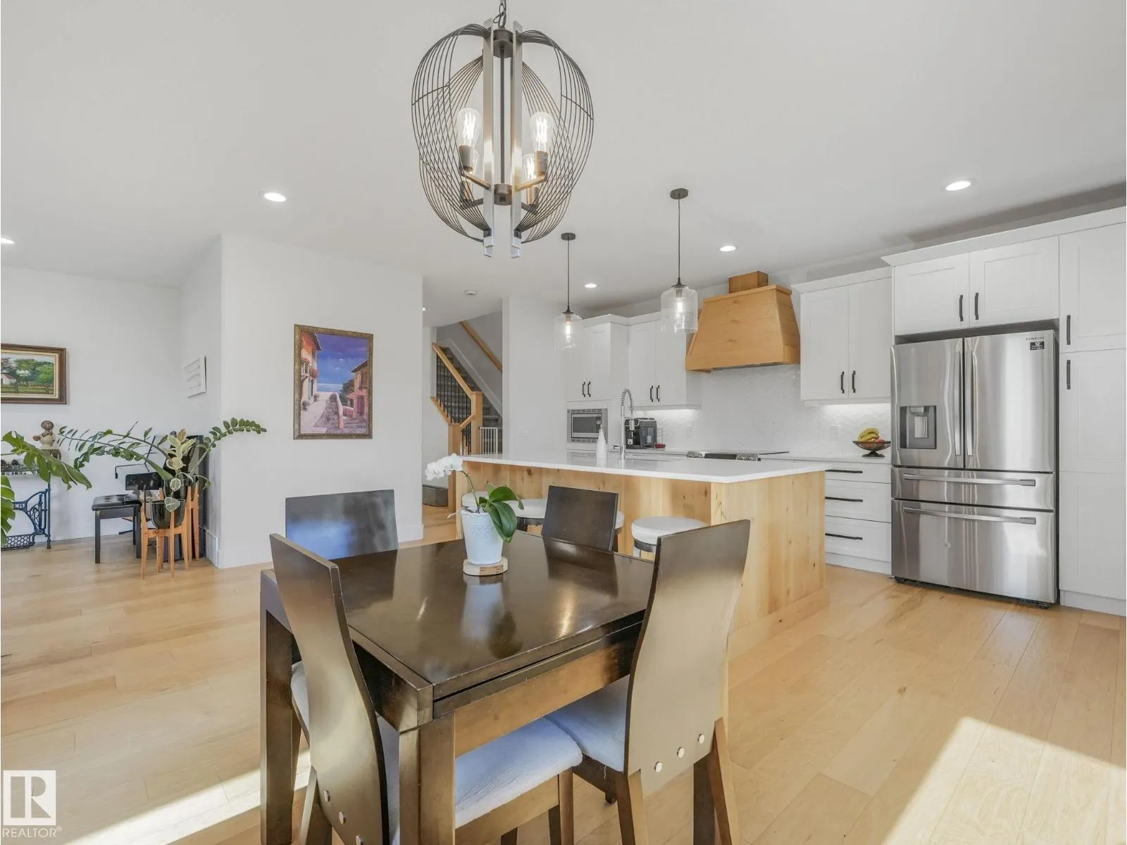 Come home to Larch Park, just steps from the ravine and scenic trails. This beautifully designed home offers 5 bedrooms, 3.5 bathrooms, and over 3,200 sq ft of living space. The main floor features 10′ ceilings, expansive windows, and a bright open-concept layout. The living room fireplace anchors the space, flowing effortlessly into the dining area and stunning kitchen with