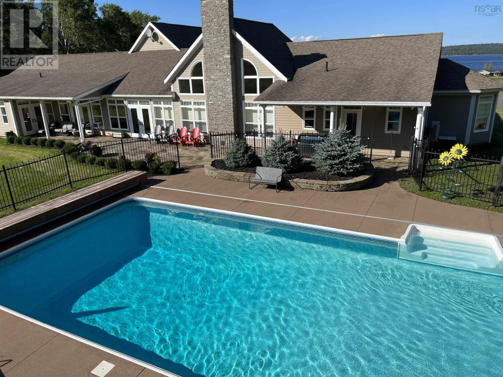 Welcome to a masterfully designed executive bungalow where luxury meets effortless one-level living. Set back on a private paved circular driveway, this sprawling estate offers an unparalleled lifestyle. The heart of the home features a chefs kitchen equipped with professional-grade Thermador appliances, including a propane range top and steam oven. Relax in the spacious living area anchored by a cozy