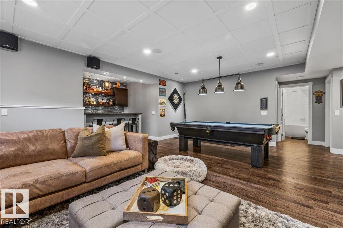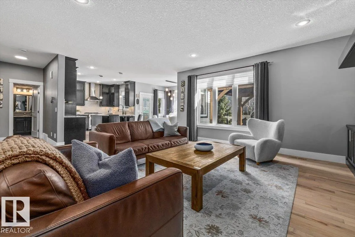 Immaculate condition and evident pride of ownership define this truly unique, move-in ready estate home, ideally located in a quiet cul-de-sac in Summerwood, Sherwood Park. Spacious and beautifully fully finished, this home features 5 bedrooms, including 2 in the fully developed basement with 9 ft basement ceilings. The main floor showcases stunning white maple hardwood throughout, a large den, and