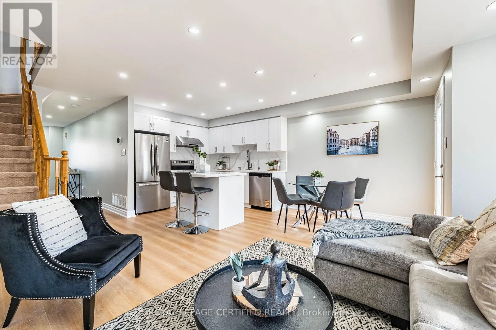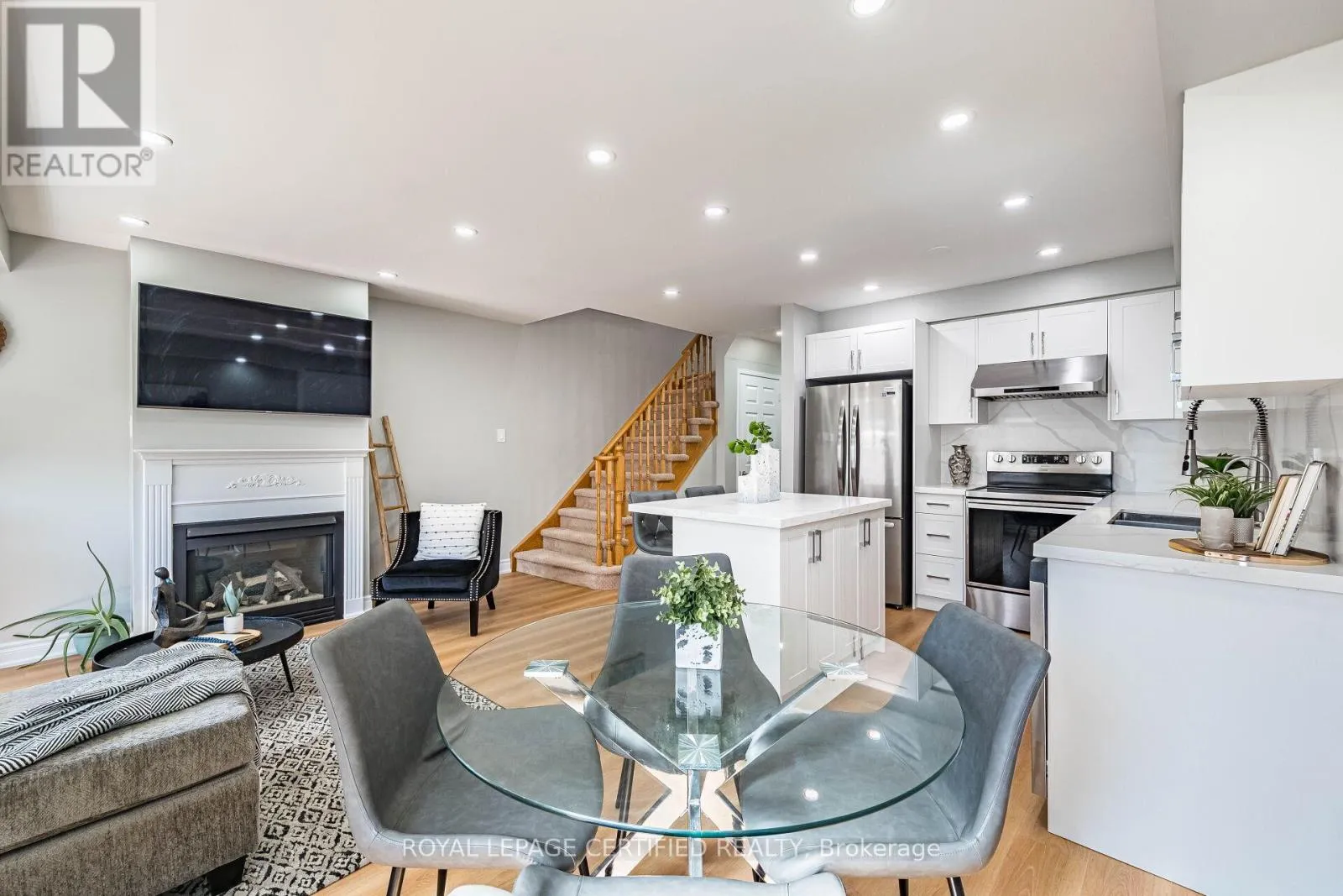 Welcome to this beautifully maintained freehold townhome (no condo or POTL fees) in Georgetown’s sought-after Dominion Gardens-offering stylish, move-in-ready living with extensive recent upgrades throughout. The open-concept main floor features new flooring (2026), a cozy natural gas fireplace, and a fully renovated kitchen(2026) with modern cabinetry, quartz countertops & backsplash, and new stainless steel appliances. Pot lights on all three