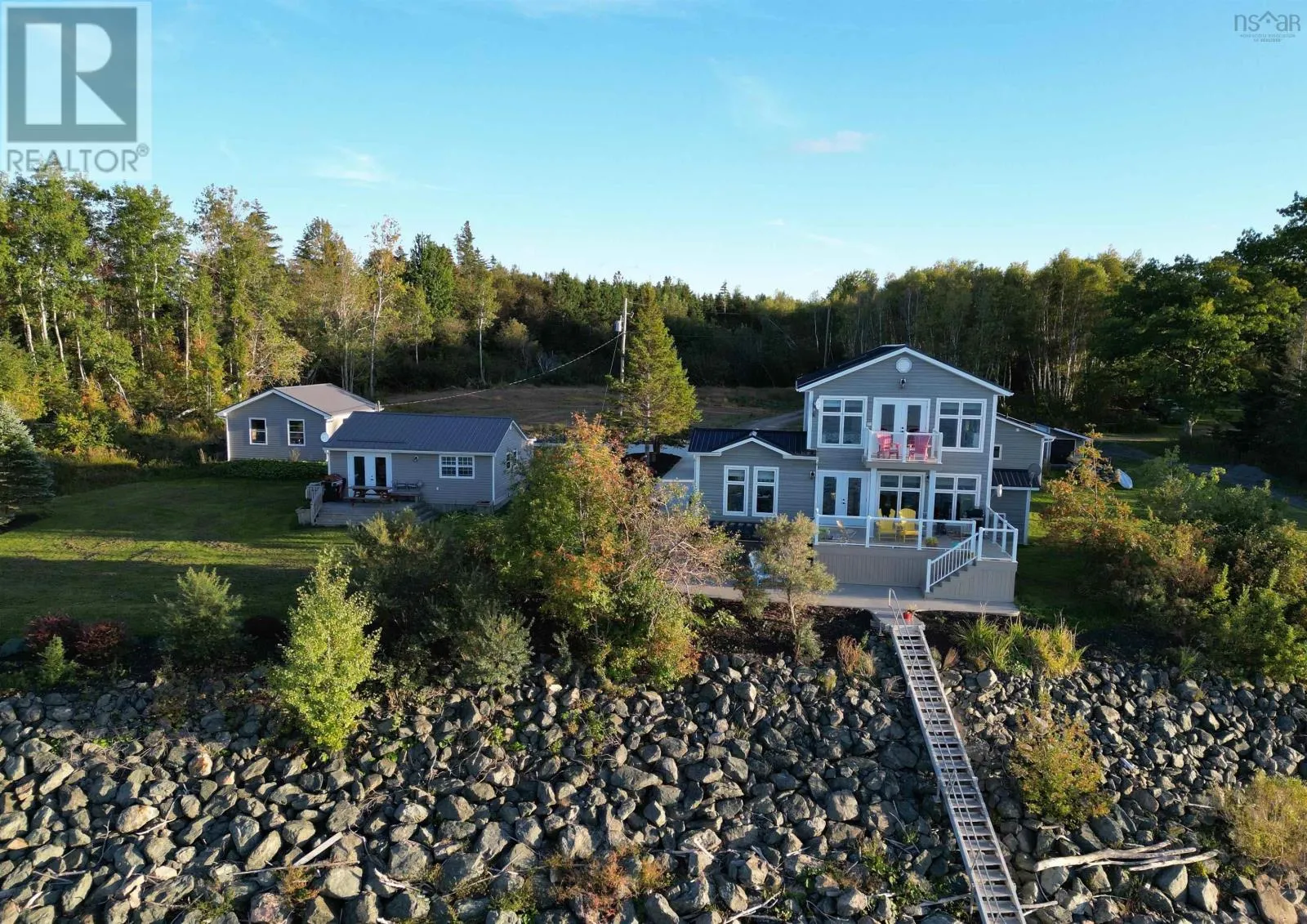 Stunning Waterfront Property! Step into your serene and rejuvenating dream waterfront oasis, nestled on 255 feet of saltwater frontage from Pictou Harbour across two parcels spanning 3.6 acres. This exquisite updated modern property boasts a main house with a guesthouse, two newer garages, and a plethora of luxurious amenities to elevate your lifestyle. The main house is a three