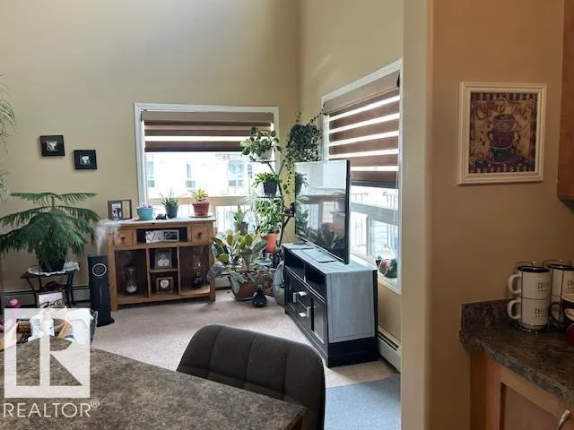 Welcome to this TOP FLOOR LOFT STYLE CORNER unit in Clareview featuring TWO titled parking stalls! This bright 2 bed, 2 bath condo offers an open-concept layout with soaring ceilings and extra south/southwest-facing windows that fill the space with natural light. The spacious living area flows into the kitchen, perfect for everyday living and entertaining. The primary bedroom includes double