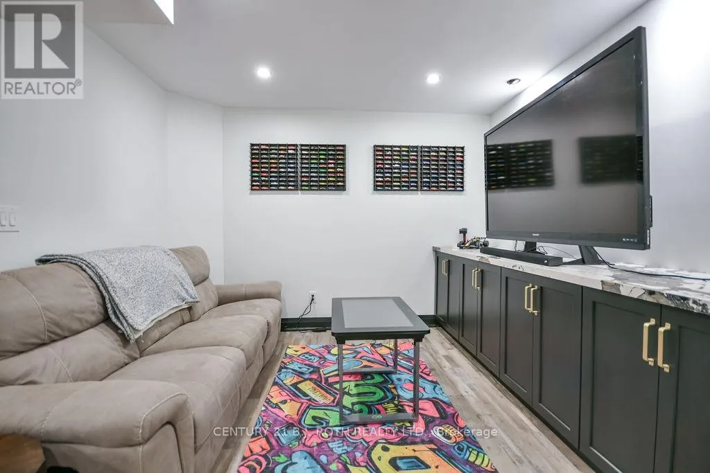 granite countertops, travertine tile, breakfast bar, and stainless steel appliances including a gas range, beverage refrigerator, and dishwasher. The inviting Primary Suite offers a luxurious ensuite and tranquil views, while the main floor laundry and 2-piece powder room add convenience and functionality. Hardwood floors flow seamlessly through the main living areas, enhancing the home’s warmth and character. The finished lower level is designed for entertainment and relaxation, featuring two large bedrooms, a spa-inspired bathroom with walk-in shower, a home theatre, video gaming area, and a spacious family room with custom bar area – perfect for hosting friends and family. Step outside to your private oasis: a large entertainment-sized deck overlooks the landscaped yard and a stunning 16′ x 32′ heated inground pool (2023), creating the ultimate backyard retreat. The attached double tandem oversized garage provides ample space for vehicles, tools, and toys. This beautiful home is also wired for generator power for added security during power outages. Ideally located near parks, soccer fields, baseball diamonds, pickleball courts, and the new Xposed Ball Hockey League Courts, this home offers the perfect balance of luxury, recreation, and community living. Experience the best of country charm and modern sophistication in this exceptional Warminster bungalow – a true entertainer’s dream! UPGRADES: Waterproofing of complete basement (2023), Washer & Dryer (2024), Humidifier (2023), Buried electric fence for pets, all deck boards (2024) (id:62650)