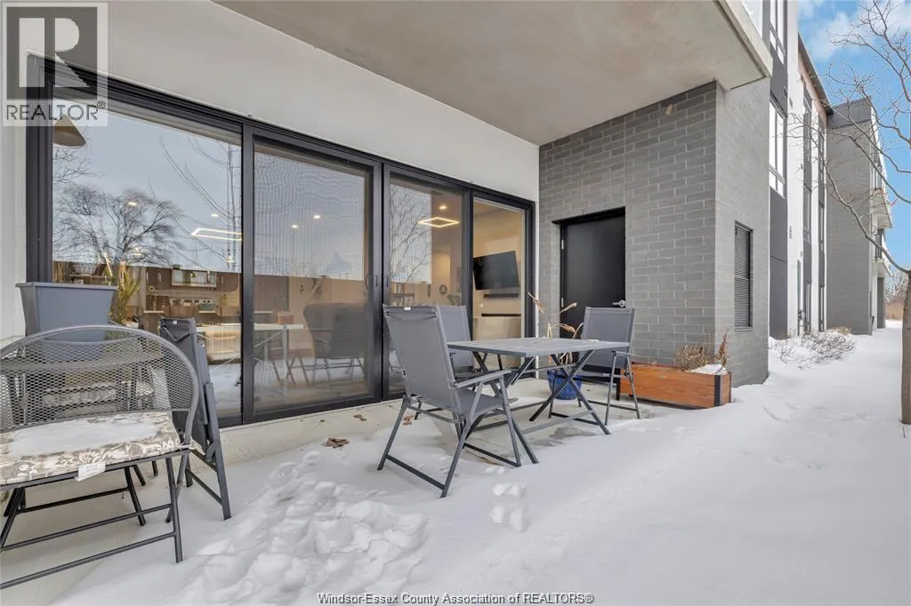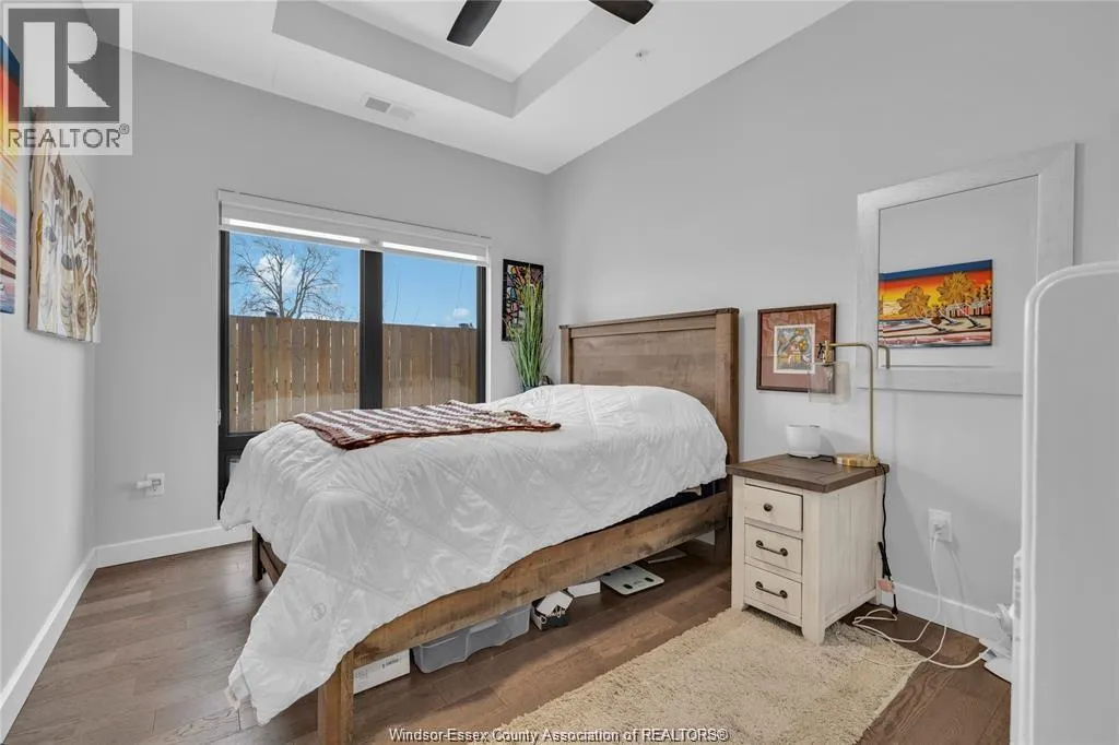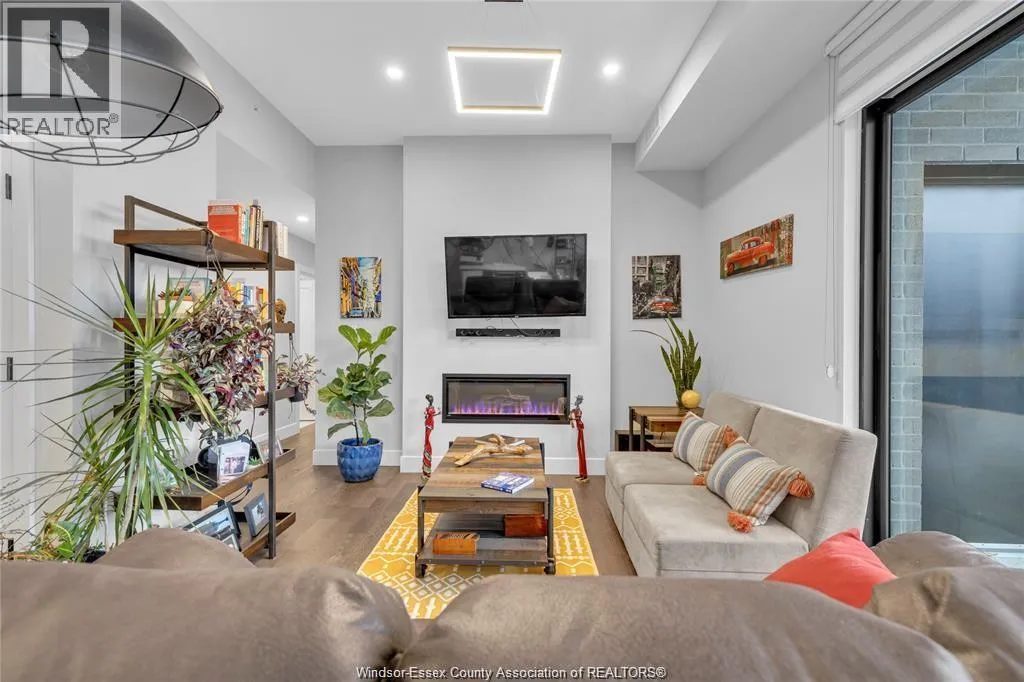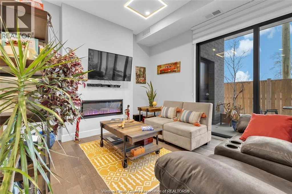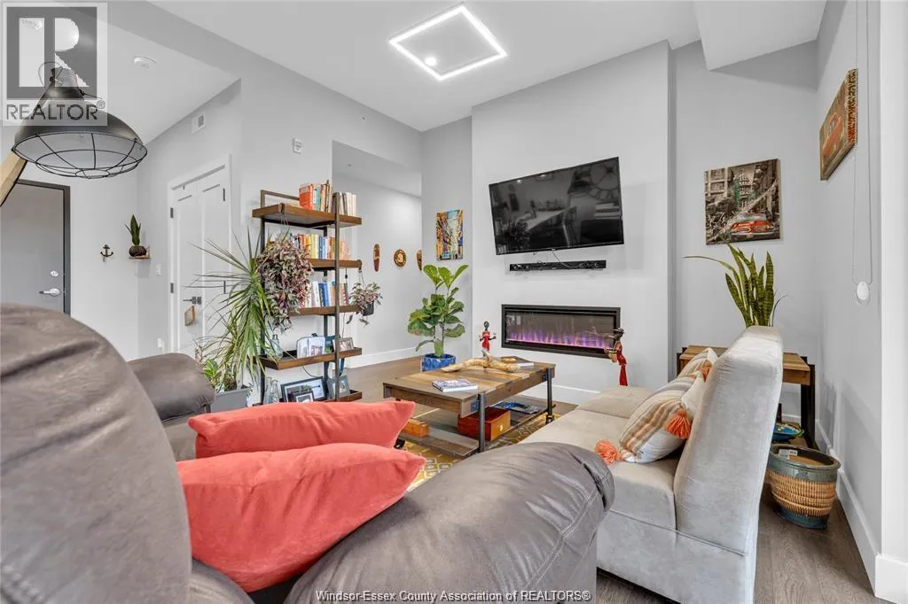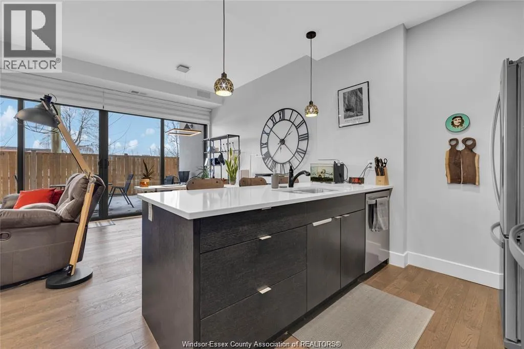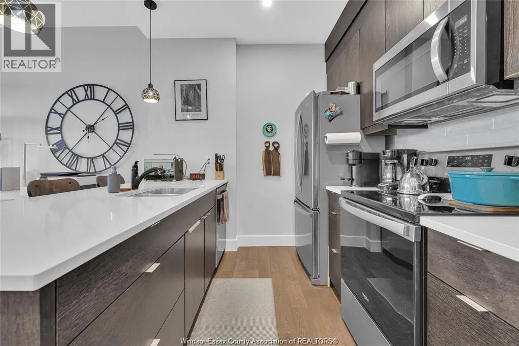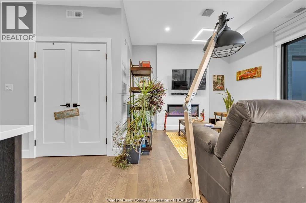 Stunning main level condo in beautiful Kingsville featuring oversized patio doors that fill the space with natural light and open to a private patio/balcony! The open-concept kitchen with island overlooks the dining area and living room with a cozy fireplace, creating a perfect space for both everyday living and entertaining. Beautiful hardwood flooring flows throughout, adding warmth and elegance. This