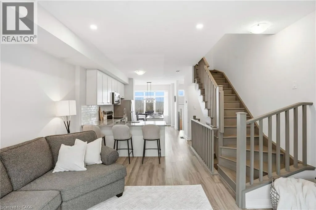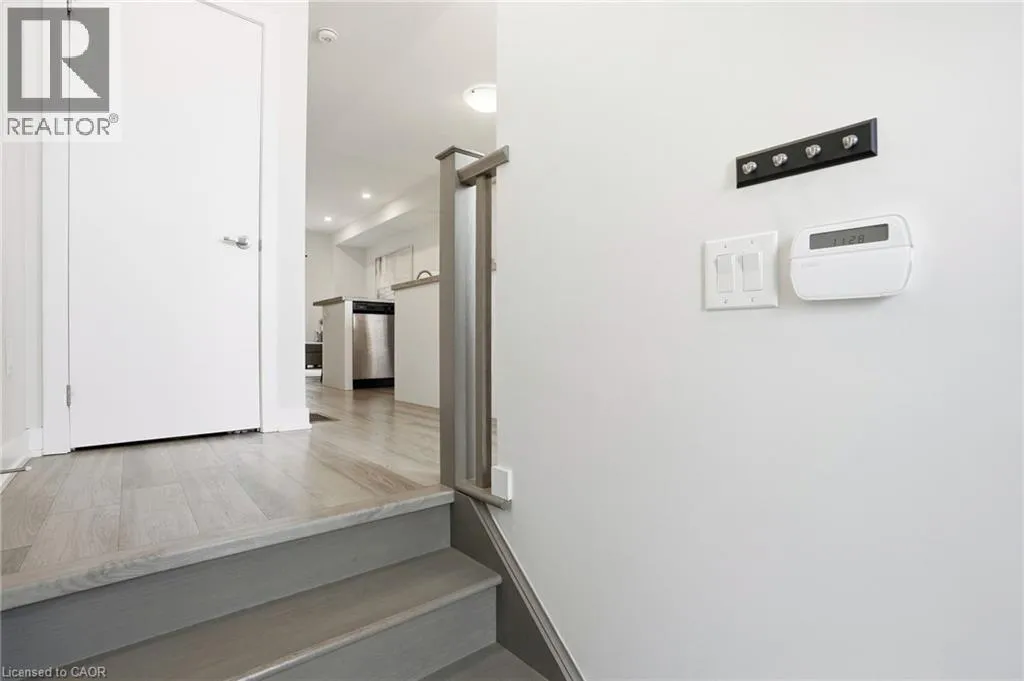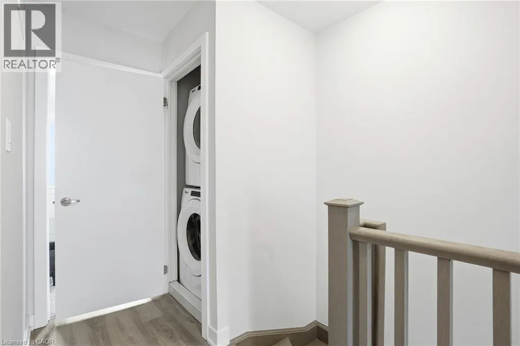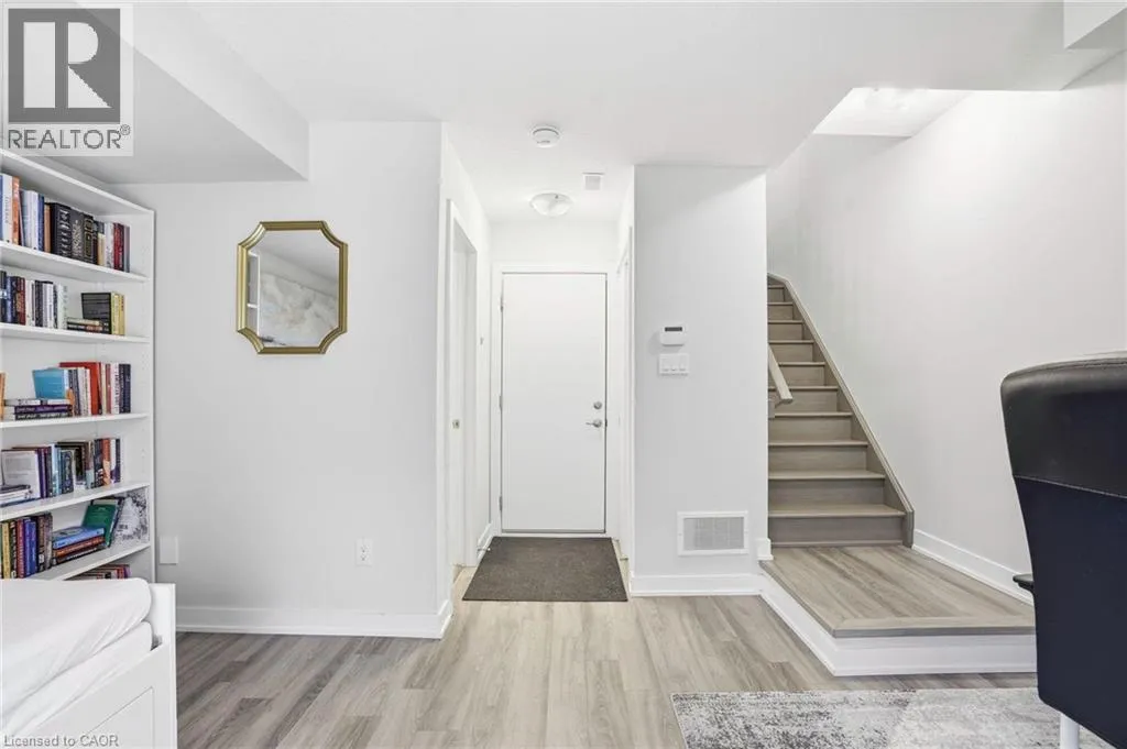 space. Upstairs, you will find two generously sized bedrooms, a full bathroom, convenient third-floor laundry, and a primary bedroom with a walk-in closet. The ground level, easily converted into a third bedroom or used as a guest suite, offers inside access to the garage, a powder room, and a family room with a walkout to the backyard. Low condo fees of $115/month cover building insurance, common elements, and parking. A standout opportunity in a highly desirable Ancaster location. (id:62650)