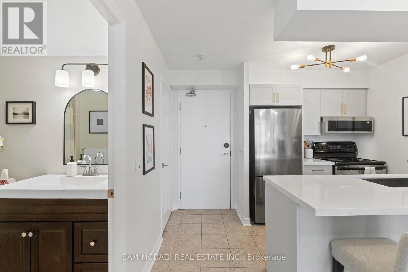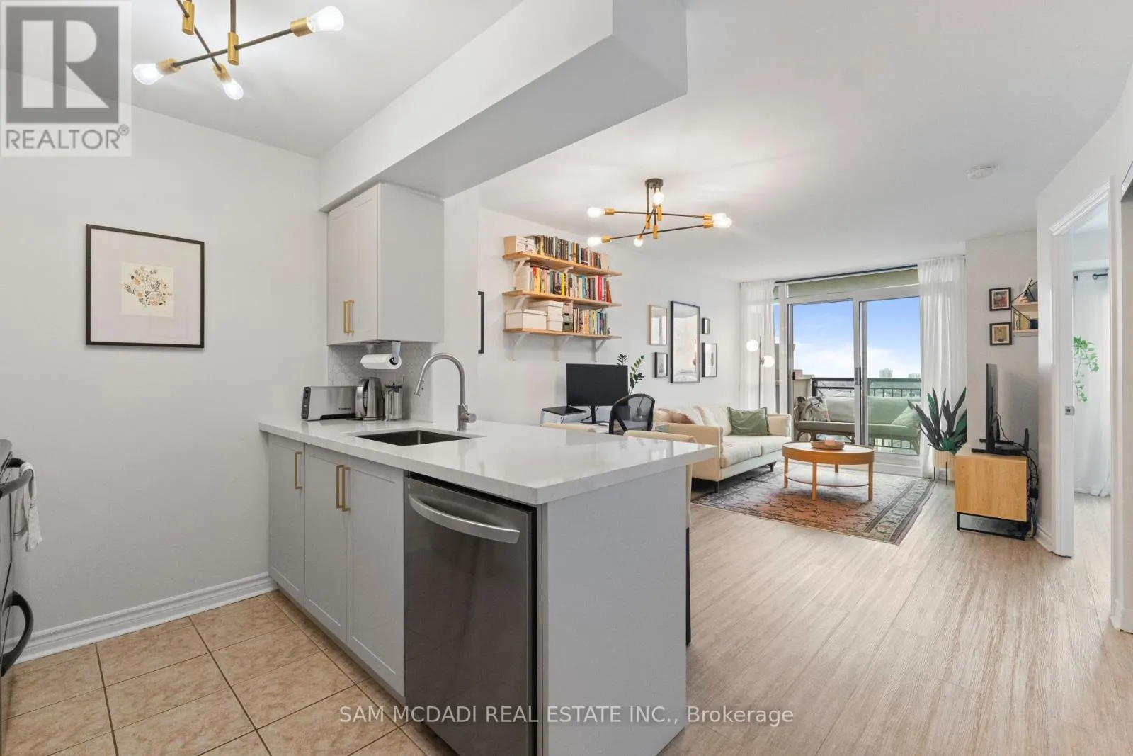 Welcome to this beautifully updated 9th-floor residence offering breathtaking, unobstructed views from your private balcony. This bright and modern 1-bedroom condo showcases a thoughtfully renovated kitchen featuring quartz countertops, a stylish backsplash, stainless steel appliances, and a convenient breakfast bar-perfect for both everyday living and entertaining. Enjoy seamless laminate flooring throughout, a spacious bedroom complete with a walk-in closet, and
