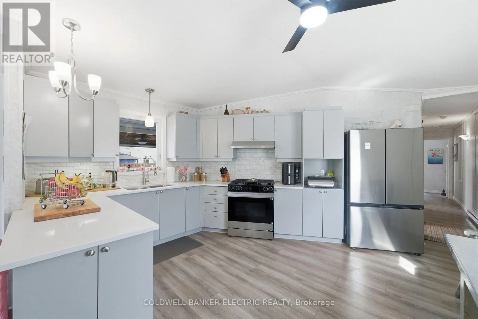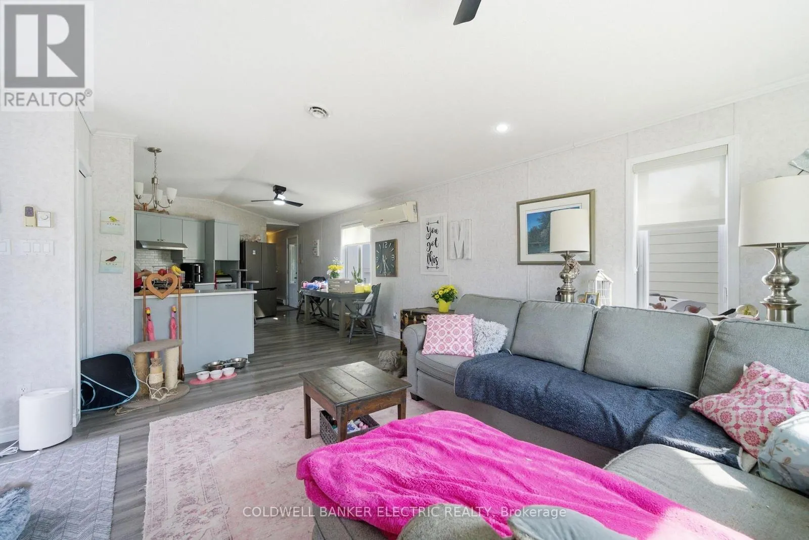 Welcome to this beautifully updated 2-bedroom bungalow in Pleasant View community, offering a peaceful, park-like setting in a quiet community just minutes from Lindsay. Enjoy an open-concept kitchen and living area with a walkout to a large deck, perfect for relaxing or entertaining. The kitchen and bathroom were updated in 2025, featuring quartz countertops in the kitchen and a clean,
